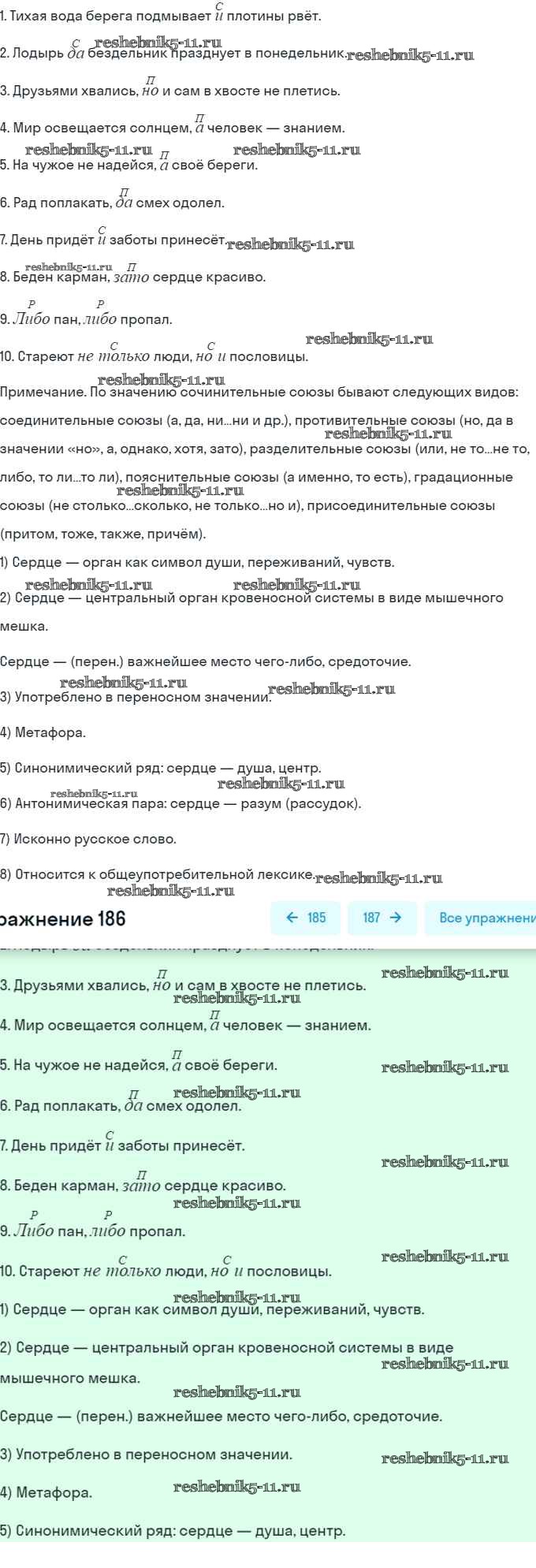 Готовая домашняя работа с ответами по Русскому языку за 7 класс Янченко, Латфуллина, Михайлова Рабочая тетрадь Часть 1, 2 Просвещение 2017 - Упражнения 186