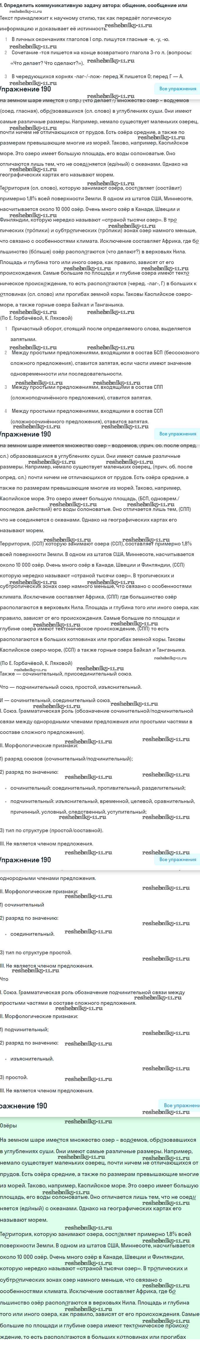 Готовая домашняя работа с ответами по Русскому языку за 7 класс Янченко, Латфуллина, Михайлова Рабочая тетрадь Часть 1, 2 Просвещение 2017 - Упражнения 190