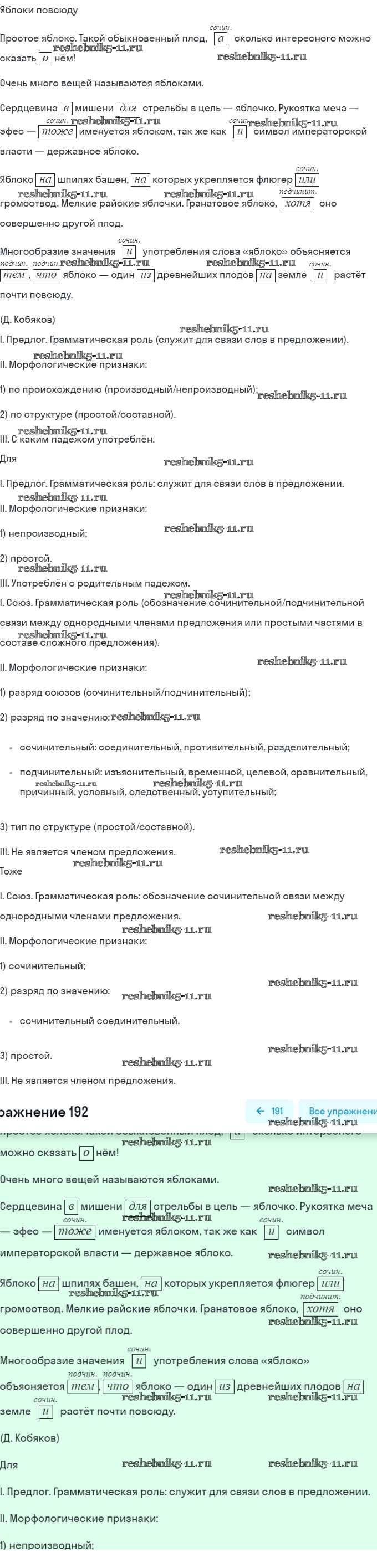 Готовая домашняя работа с ответами по Русскому языку за 7 класс Янченко, Латфуллина, Михайлова Рабочая тетрадь Часть 1, 2 Просвещение 2017 - Упражнения 192