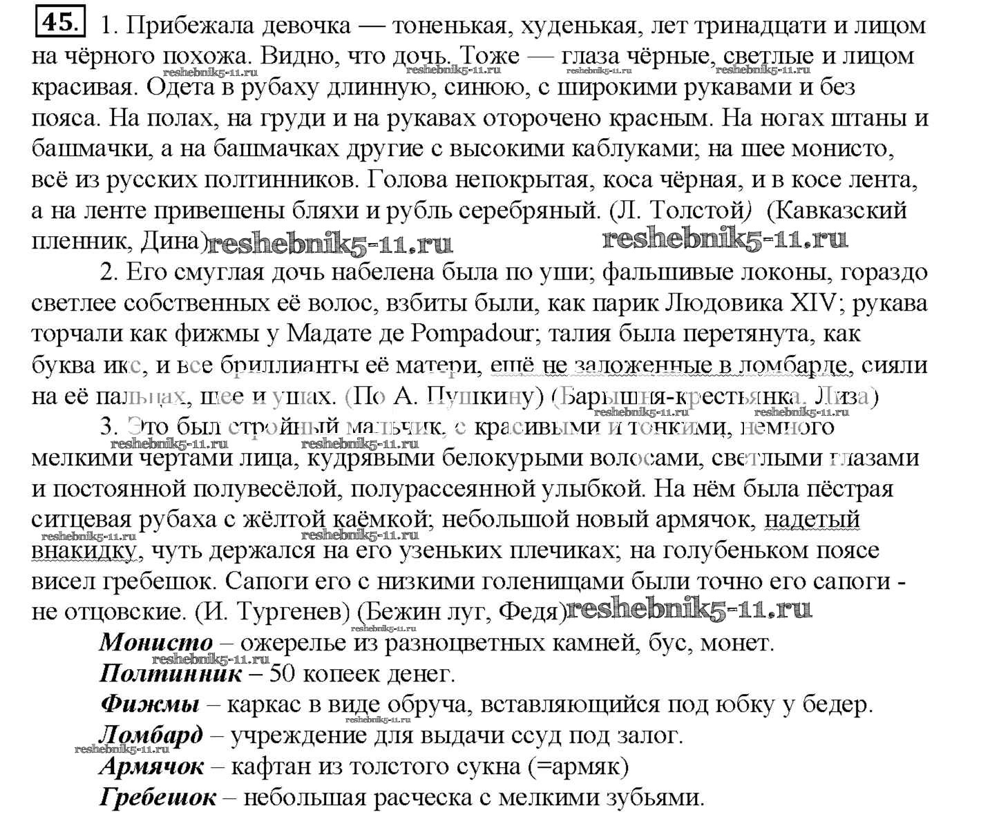 Готовая домашняя работа с ответами по Русскому языку за 7 класс Янченко, Латфуллина, Михайлова Рабочая тетрадь Часть 1, 2 Просвещение 2017 - Упражнения 45