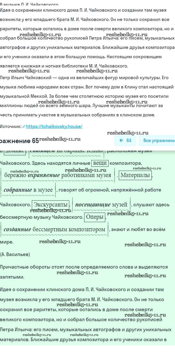 Готовая домашняя работа с ответами по Русскому языку за 7 класс Янченко, Латфуллина, Михайлова Рабочая тетрадь Часть 1, 2 Просвещение 2017 - Упражнения 65