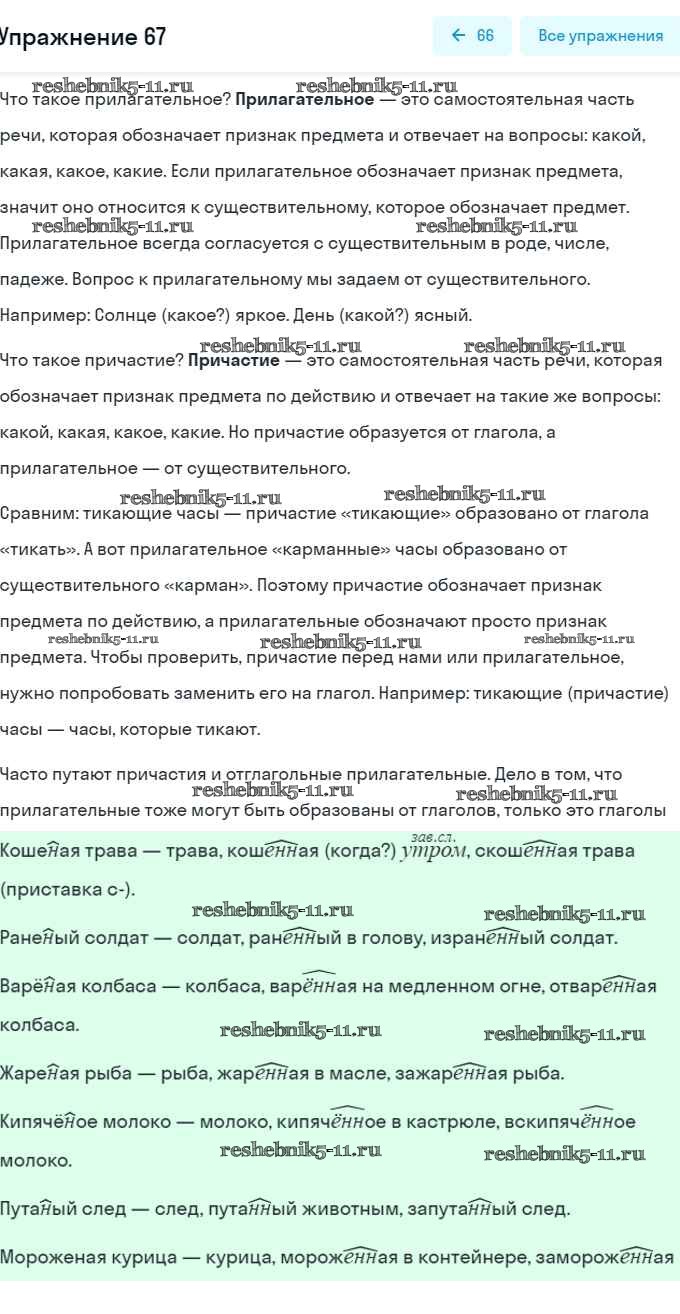 Готовая домашняя работа с ответами по Русскому языку за 7 класс Янченко, Латфуллина, Михайлова Рабочая тетрадь Часть 1, 2 Просвещение 2017 - Упражнения 67
