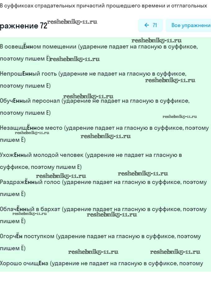 Готовая домашняя работа с ответами по Русскому языку за 7 класс Янченко, Латфуллина, Михайлова Рабочая тетрадь Часть 1, 2 Просвещение 2017 - Упражнения 72