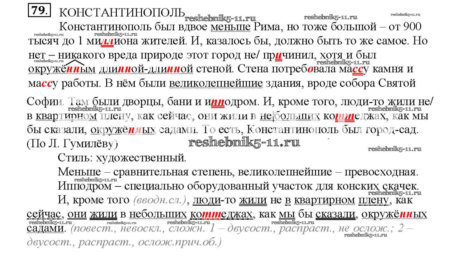 Готовая домашняя работа с ответами по Русскому языку за 7 класс Янченко, Латфуллина, Михайлова Рабочая тетрадь Часть 1, 2 Просвещение 2017 - Упражнения 79