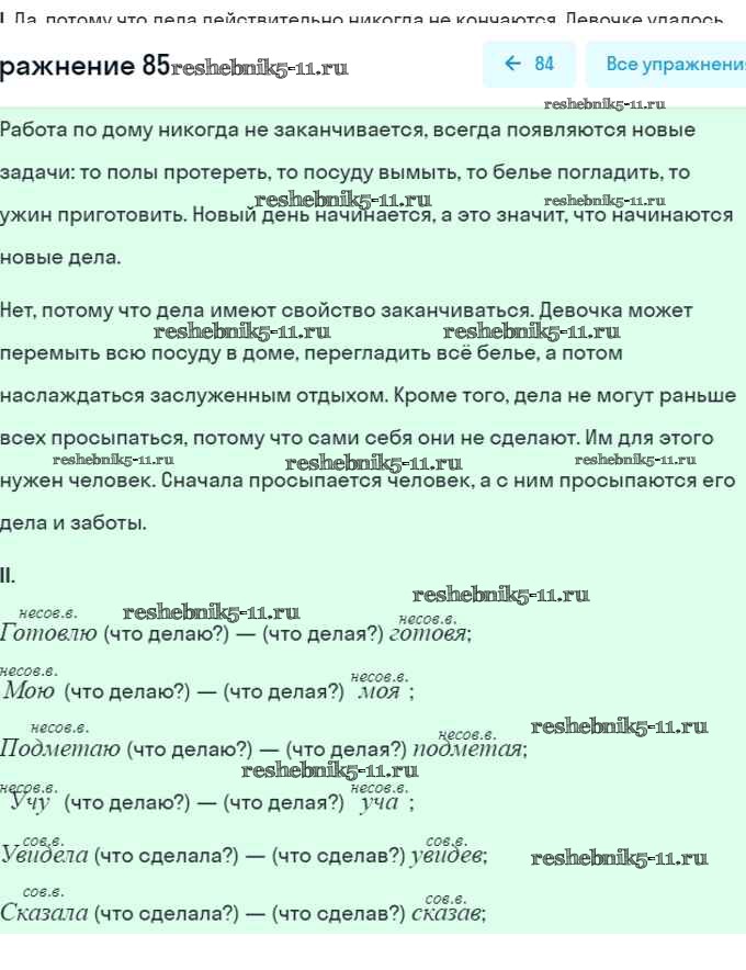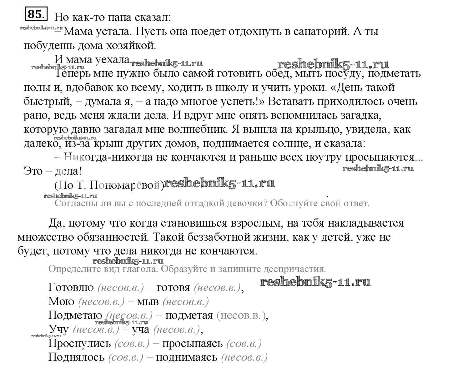Готовая домашняя работа с ответами по Русскому языку за 7 класс Янченко, Латфуллина, Михайлова Рабочая тетрадь Часть 1, 2 Просвещение 2017 - Упражнения 85