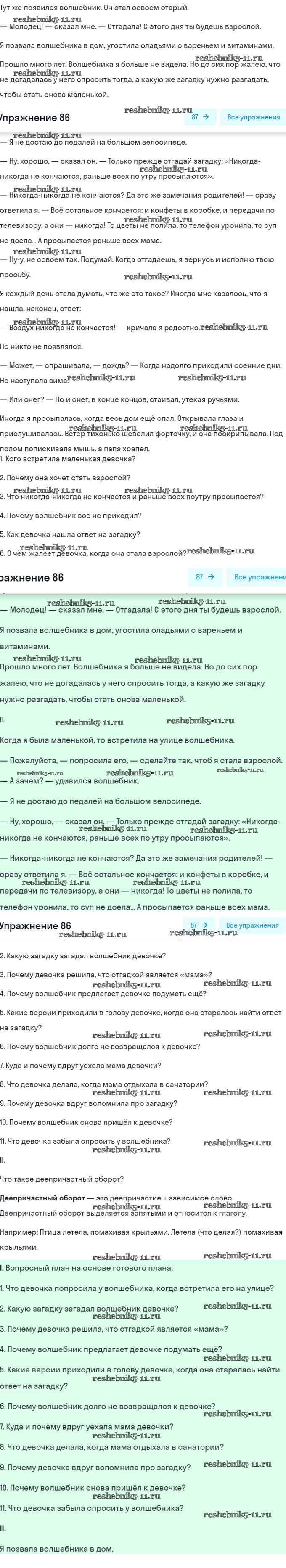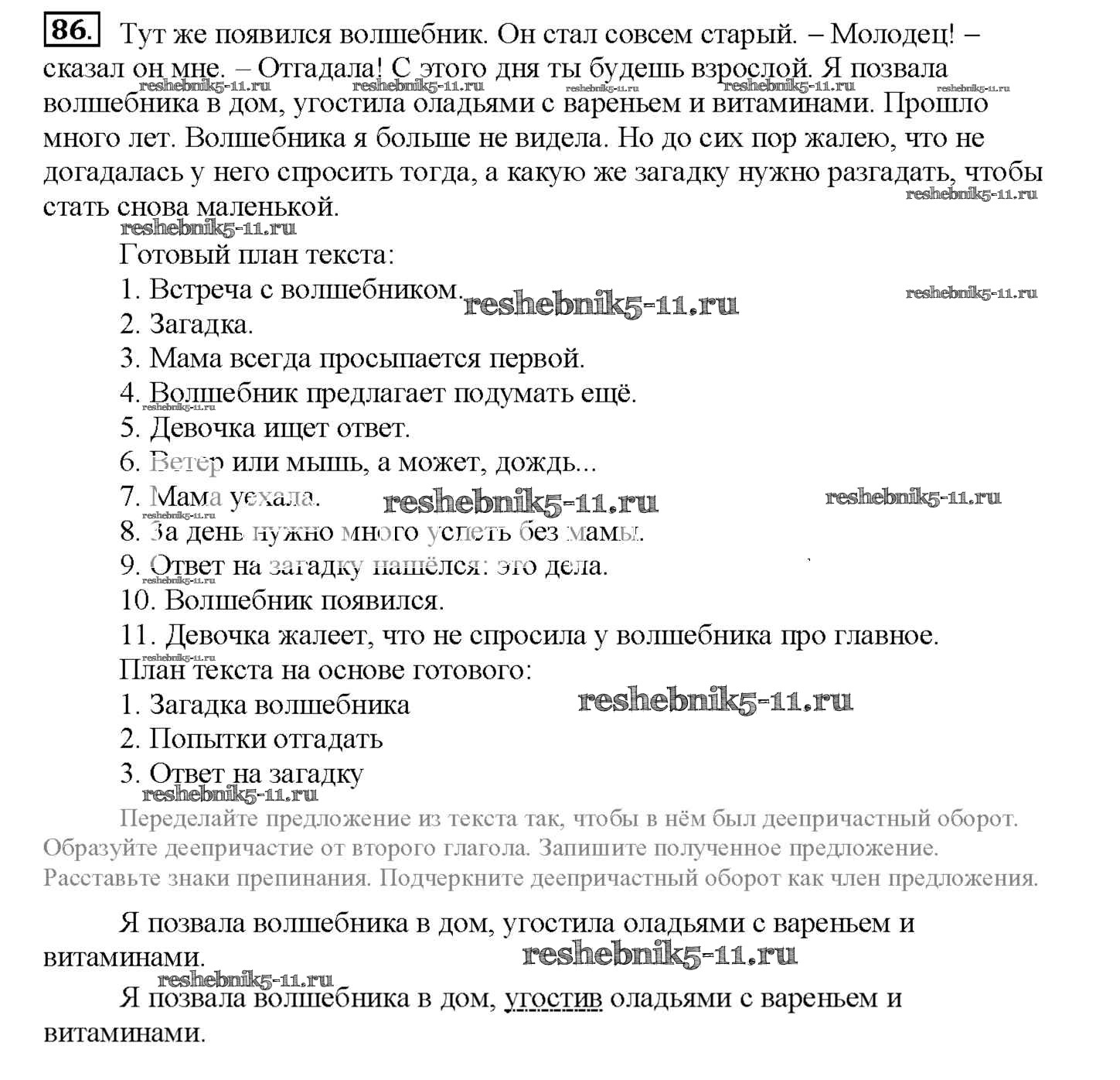 Готовая домашняя работа с ответами по Русскому языку за 7 класс Янченко, Латфуллина, Михайлова Рабочая тетрадь Часть 1, 2 Просвещение 2017 - Упражнения 86