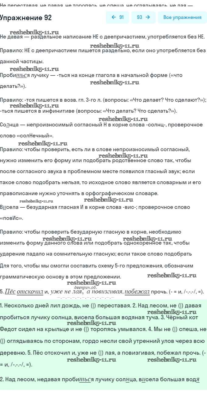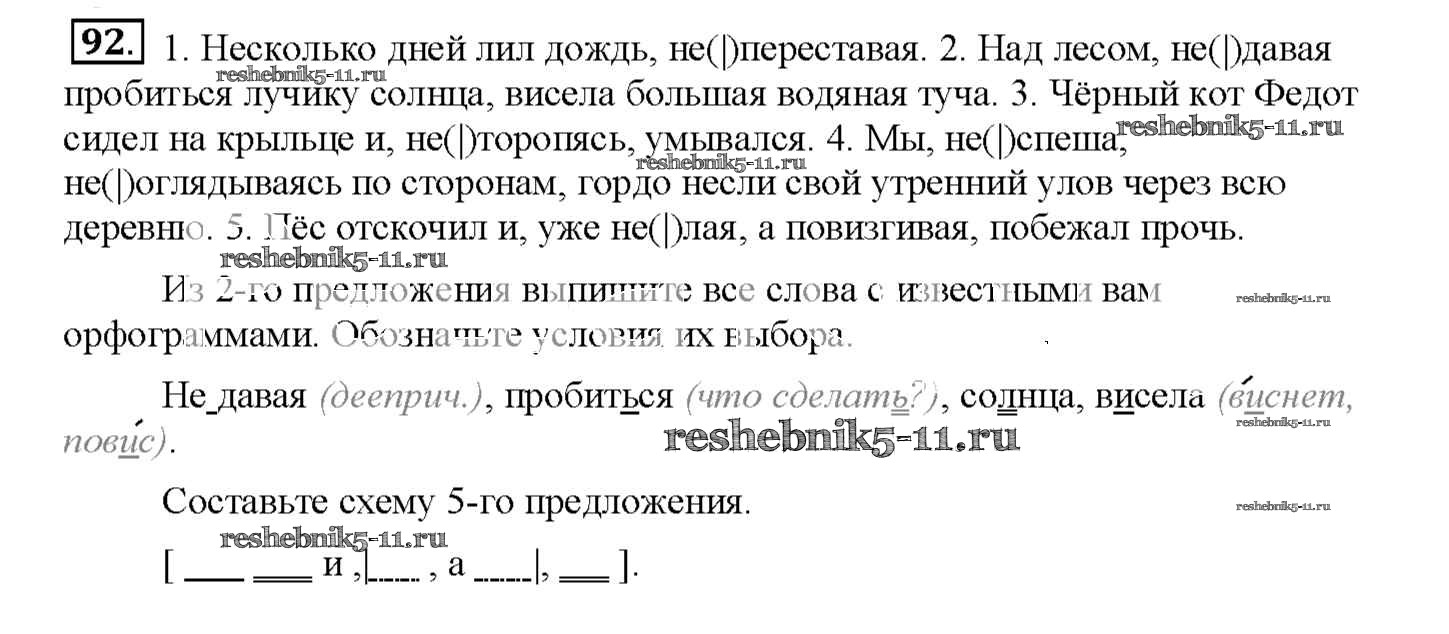 Готовая домашняя работа с ответами по Русскому языку за 7 класс Янченко, Латфуллина, Михайлова Рабочая тетрадь Часть 1, 2 Просвещение 2017 - Упражнения 92