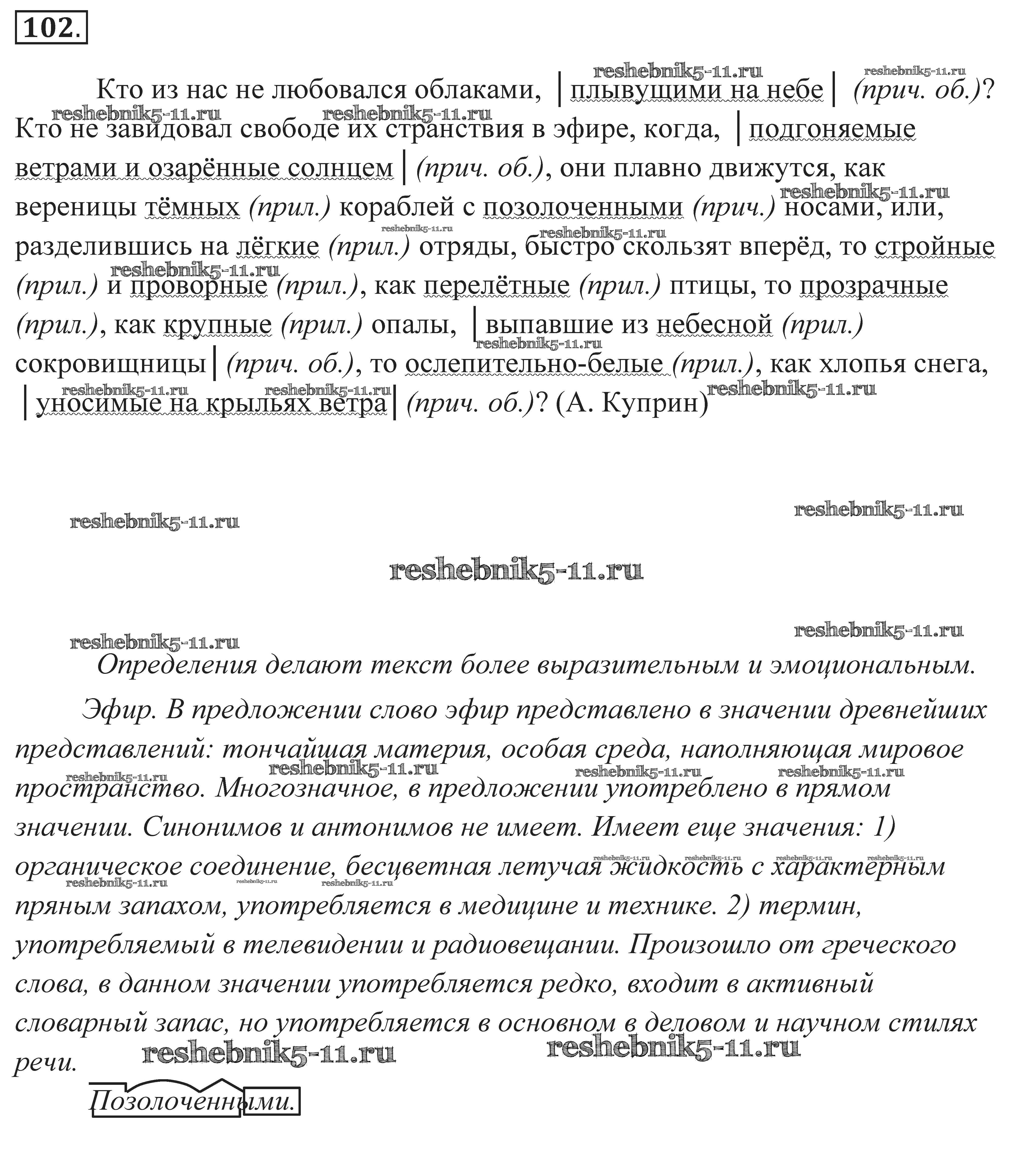 Готовая домашняя работа с ответами по Русскому языку за 7 класс Пименова, Еремеева, Купалова Практика Дрофа 2016 ФГОС - Задания 102