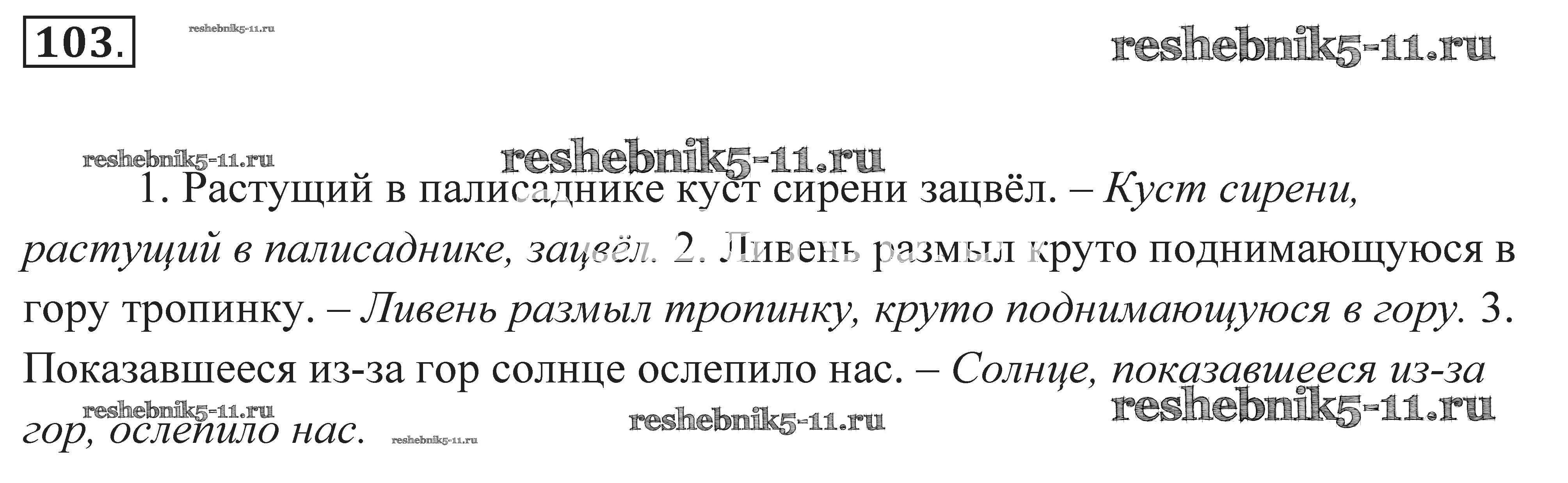 Готовая домашняя работа с ответами по Русскому языку за 7 класс Пименова, Еремеева, Купалова Практика Дрофа 2016 ФГОС - Задания 103