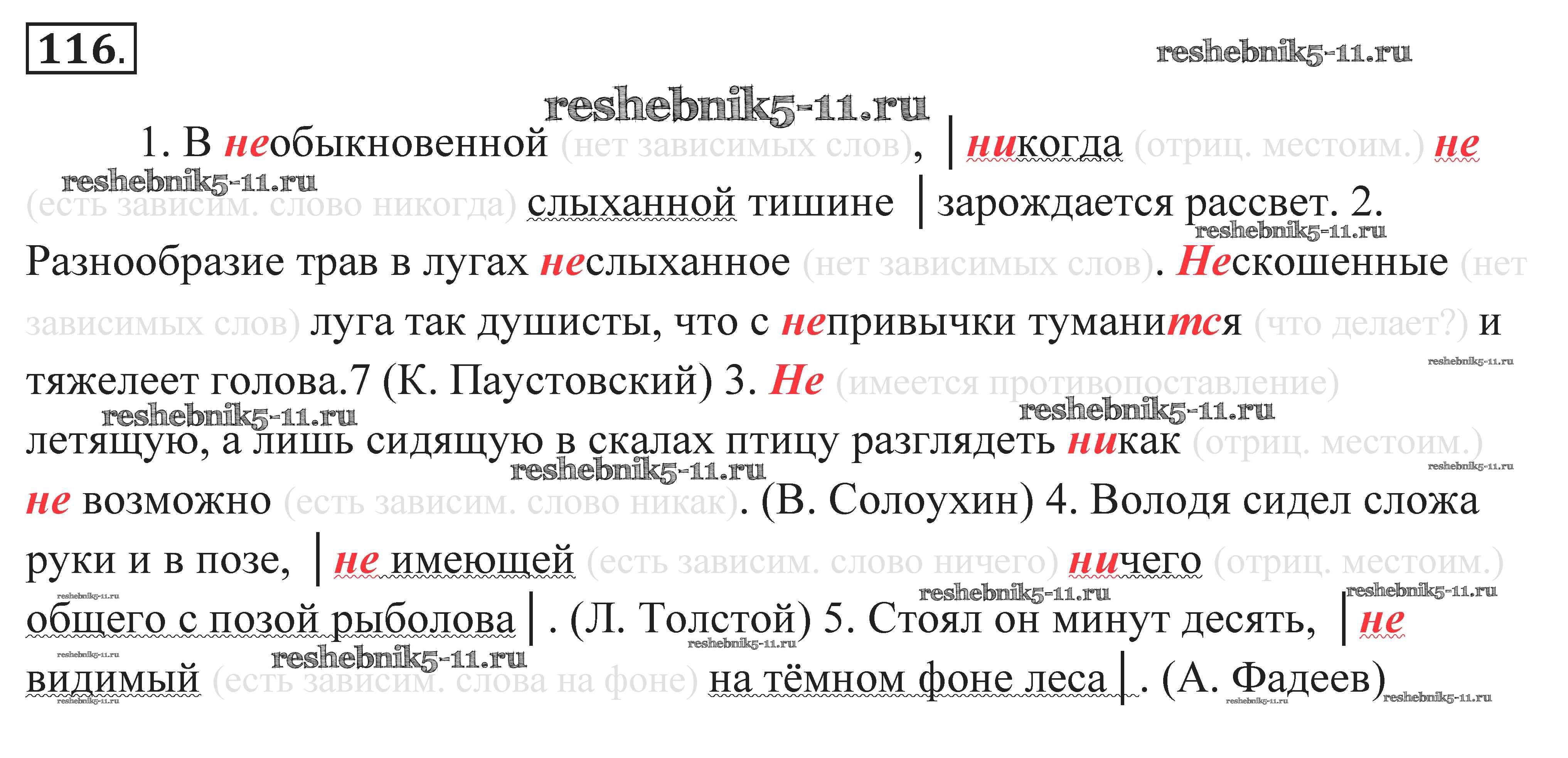 Готовая домашняя работа с ответами по Русскому языку за 7 класс Пименова, Еремеева, Купалова Практика Дрофа 2016 ФГОС - Задания 116