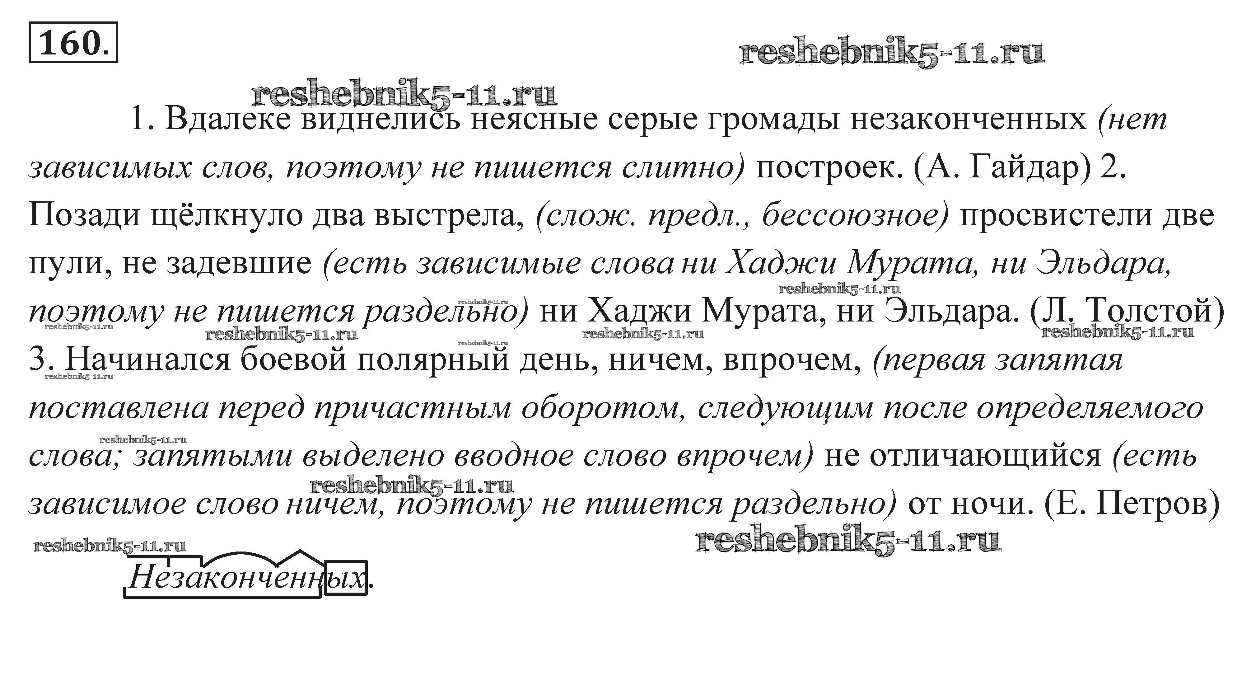Готовая домашняя работа с ответами по Русскому языку за 7 класс Пименова, Еремеева, Купалова Практика Дрофа 2016 ФГОС - Задания 160