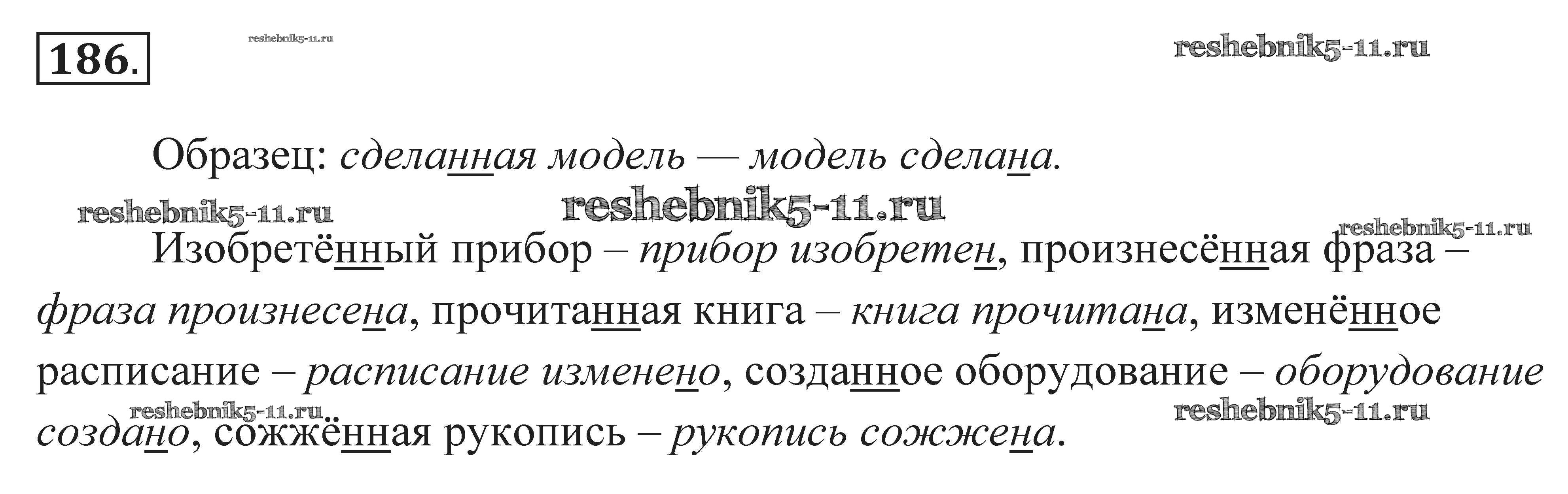 Готовая домашняя работа с ответами по Русскому языку за 7 класс Пименова, Еремеева, Купалова Практика Дрофа 2016 ФГОС - Задания 186