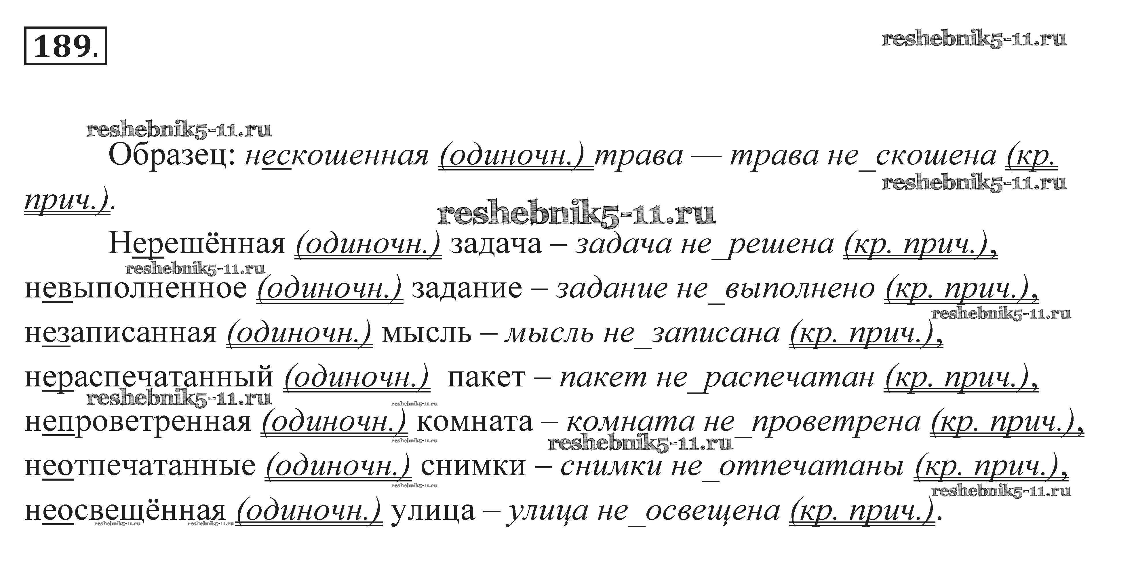 Готовая домашняя работа с ответами по Русскому языку за 7 класс Пименова, Еремеева, Купалова Практика Дрофа 2016 ФГОС - Задания 189