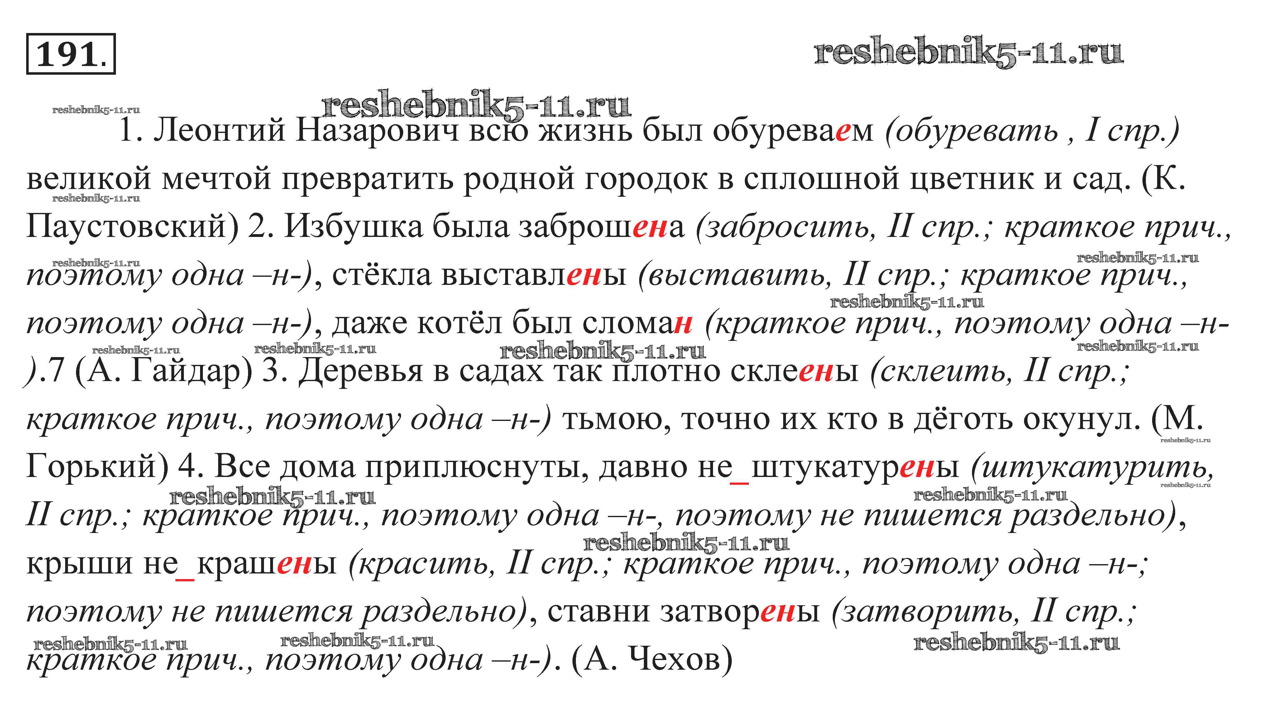 Готовая домашняя работа с ответами по Русскому языку за 7 класс Пименова, Еремеева, Купалова Практика Дрофа 2016 ФГОС - Задания 191
