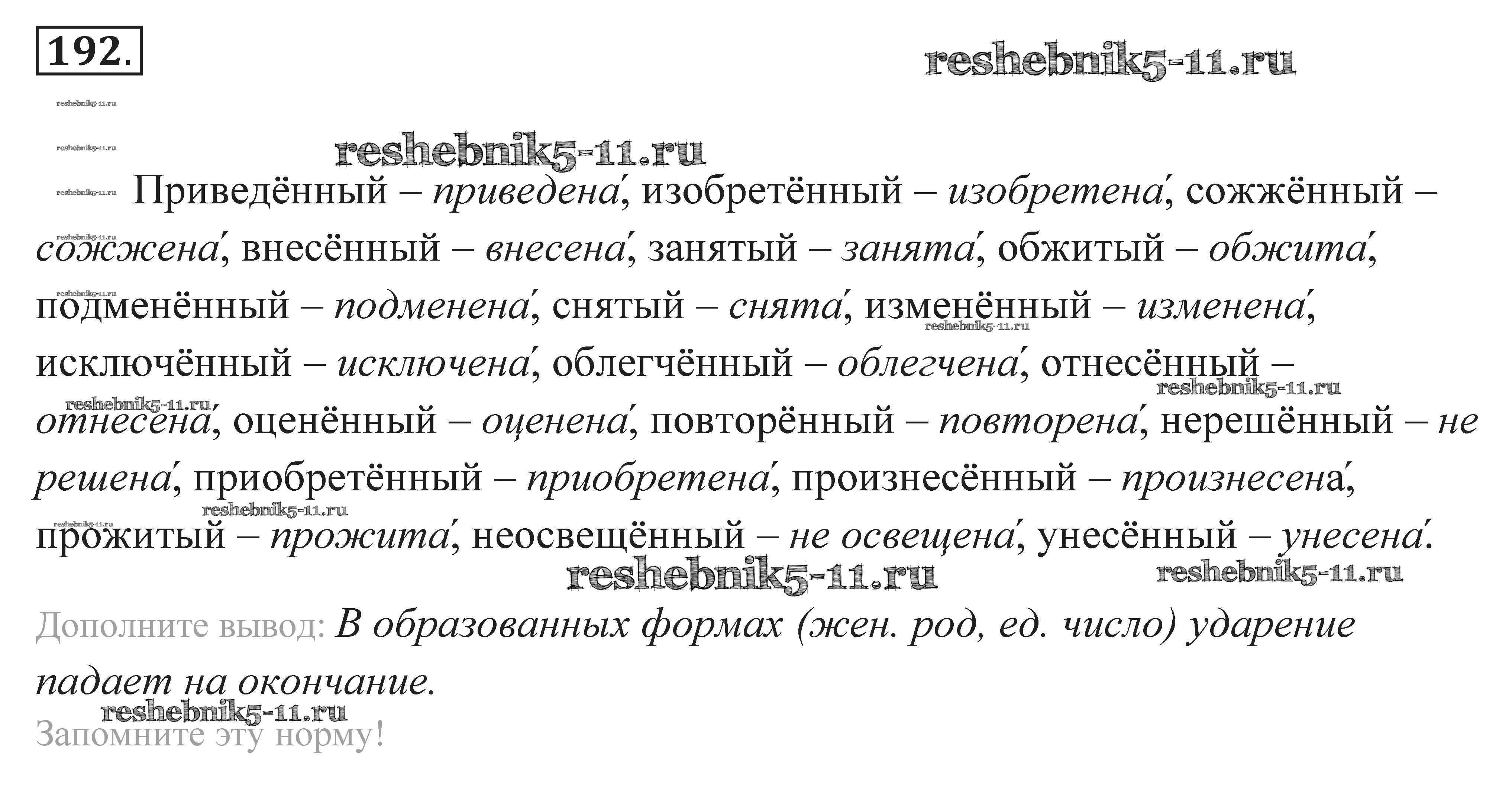 Готовая домашняя работа с ответами по Русскому языку за 7 класс Пименова, Еремеева, Купалова Практика Дрофа 2016 ФГОС - Задания 192