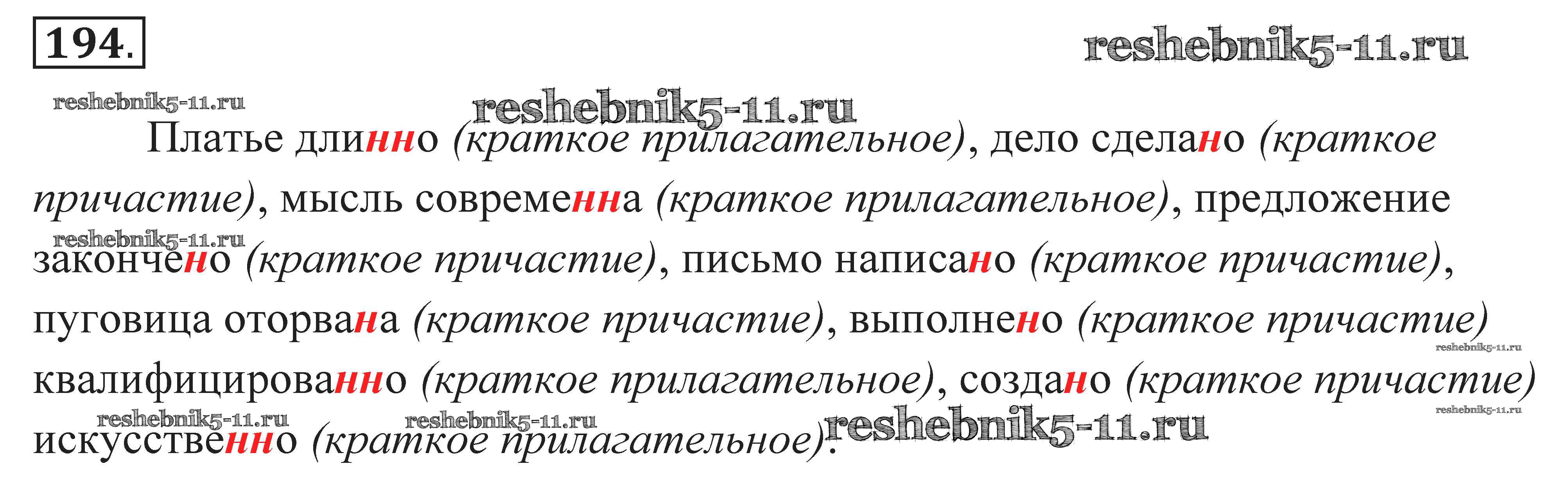 Готовая домашняя работа с ответами по Русскому языку за 7 класс Пименова, Еремеева, Купалова Практика Дрофа 2016 ФГОС - Задания 194