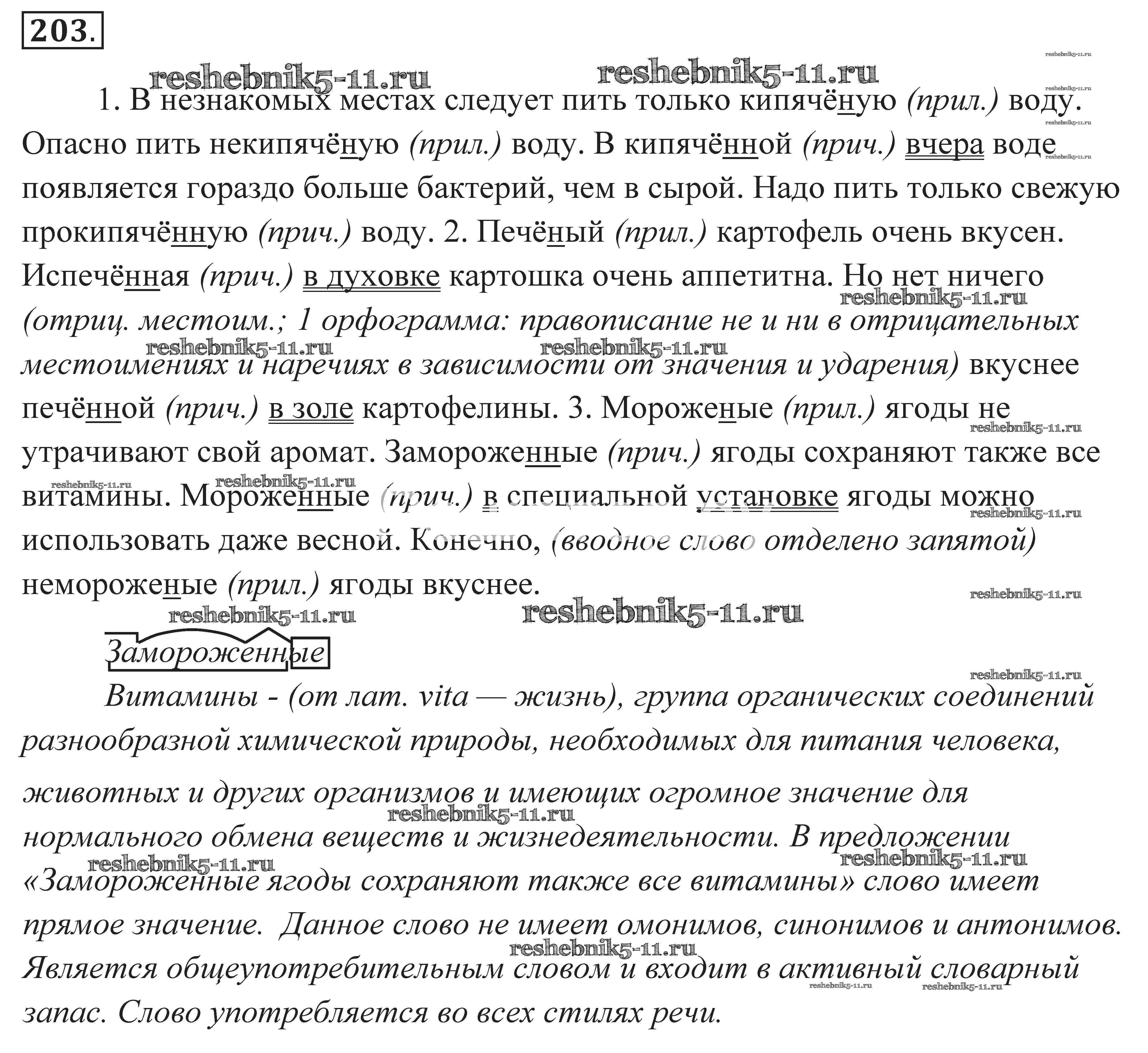 Готовая домашняя работа с ответами по Русскому языку за 7 класс Пименова, Еремеева, Купалова Практика Дрофа 2016 ФГОС - Задания 203
