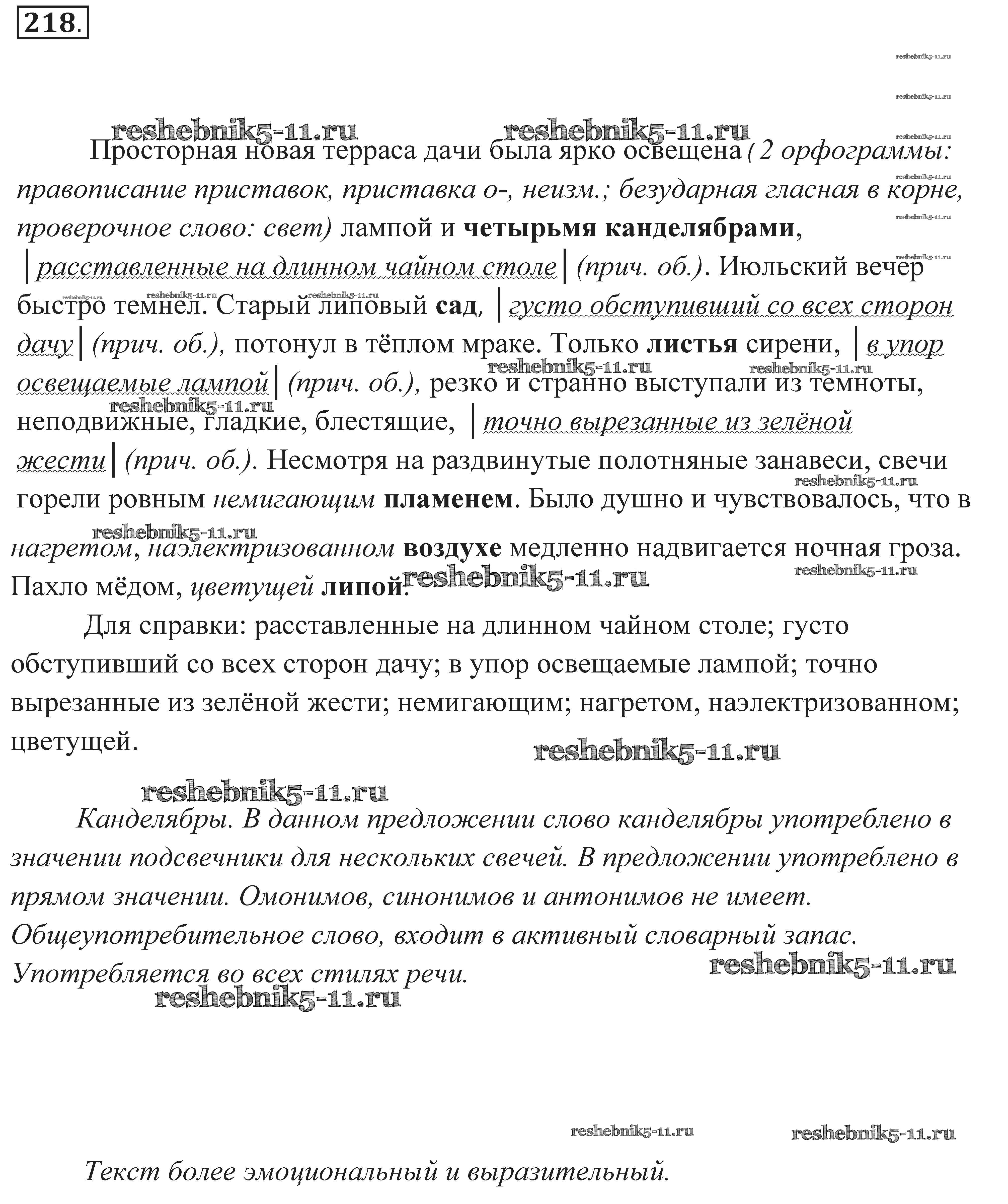 Готовая домашняя работа с ответами по Русскому языку за 7 класс Пименова, Еремеева, Купалова Практика Дрофа 2016 ФГОС - Задания 218