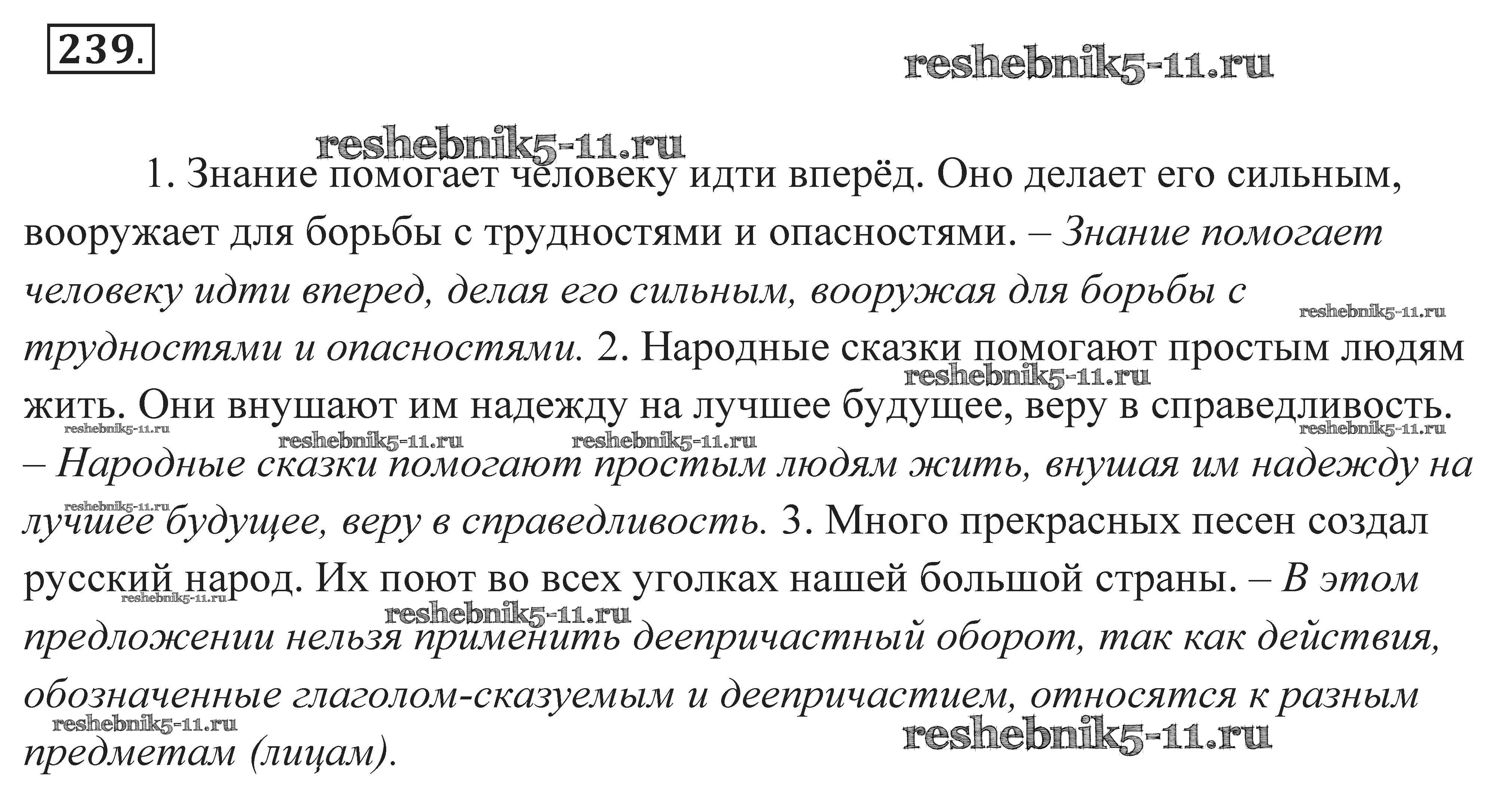 Готовая домашняя работа с ответами по Русскому языку за 7 класс Пименова, Еремеева, Купалова Практика Дрофа 2016 ФГОС - Задания 239