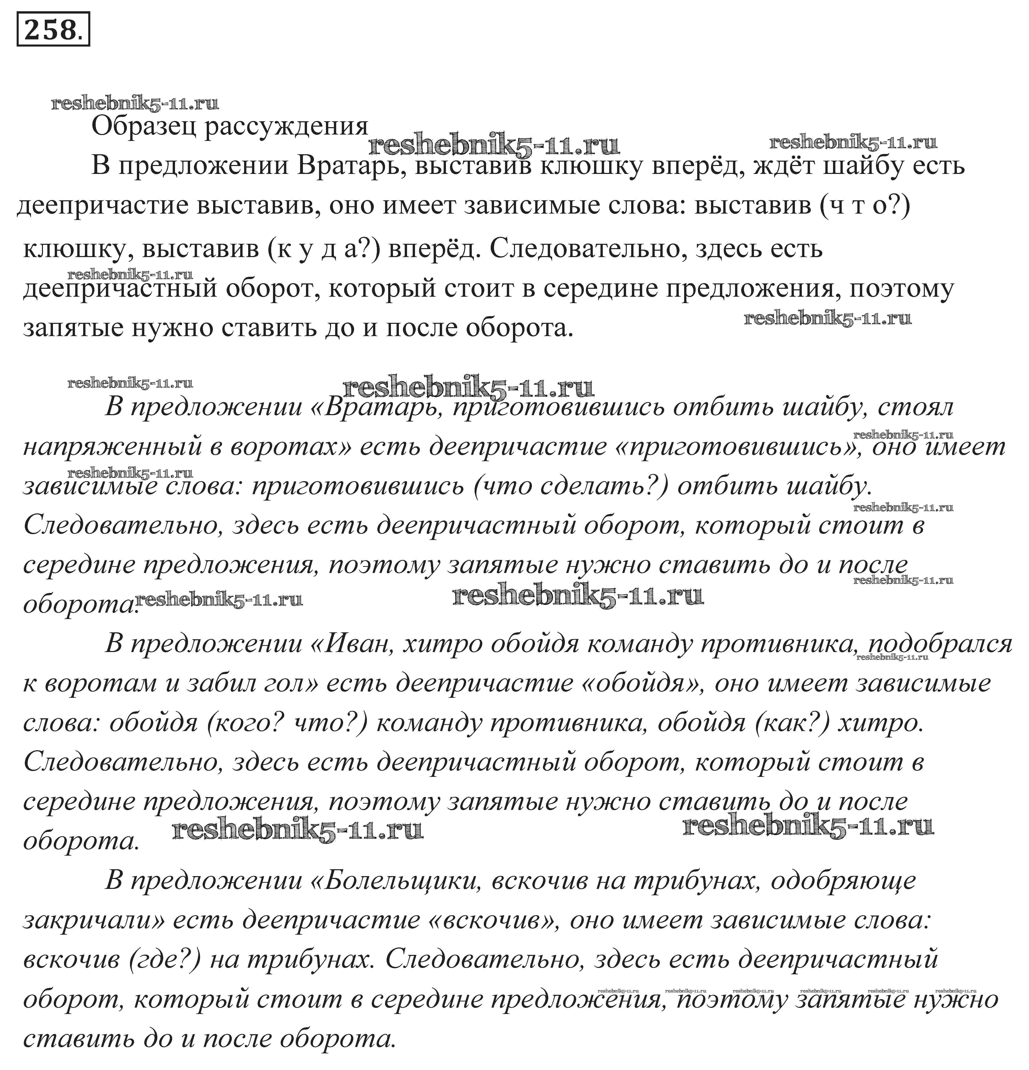 Готовая домашняя работа с ответами по Русскому языку за 7 класс Пименова, Еремеева, Купалова Практика Дрофа 2016 ФГОС - Задания 258