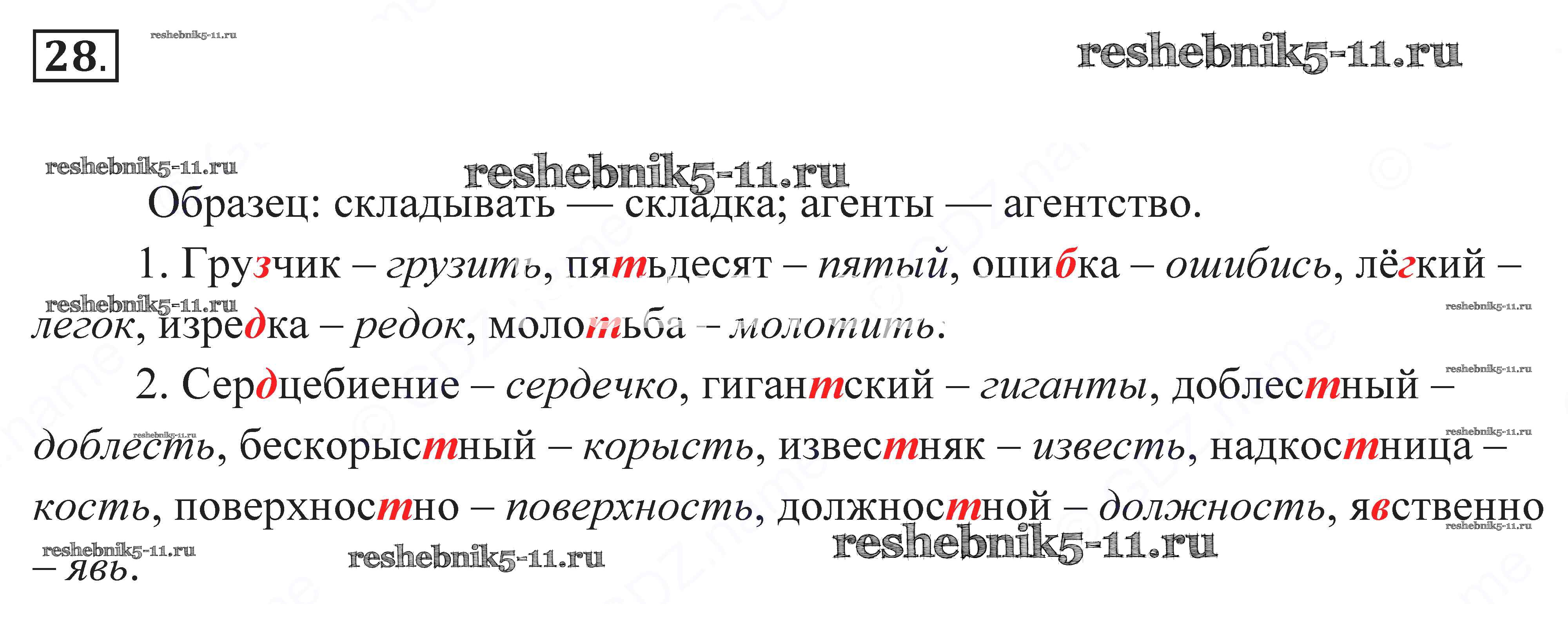 Готовая домашняя работа с ответами по Русскому языку за 7 класс Пименова, Еремеева, Купалова Практика Дрофа 2016 ФГОС - Задания 28