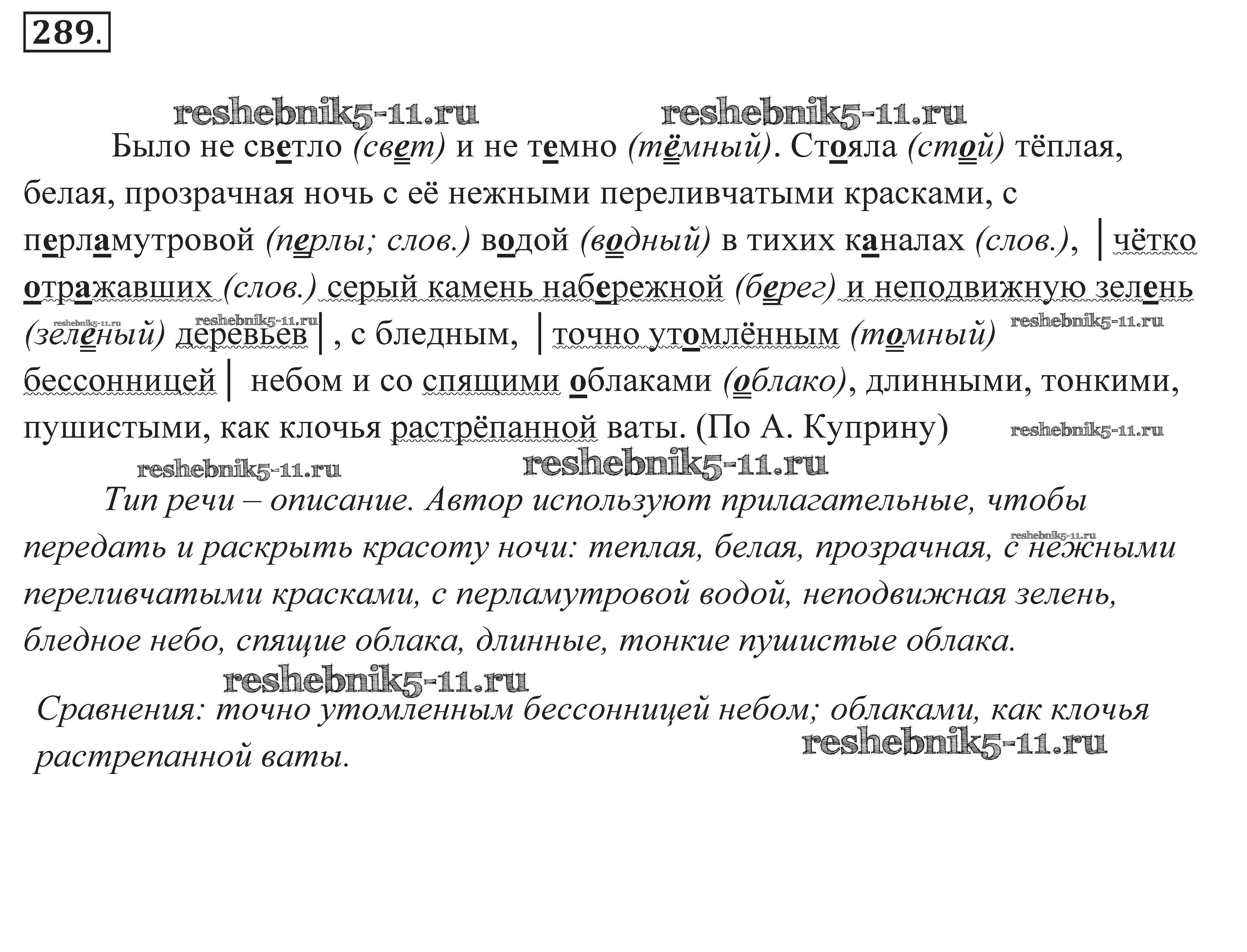 Русский язык за 7 класс Пименова Практика Дрофа задание 289