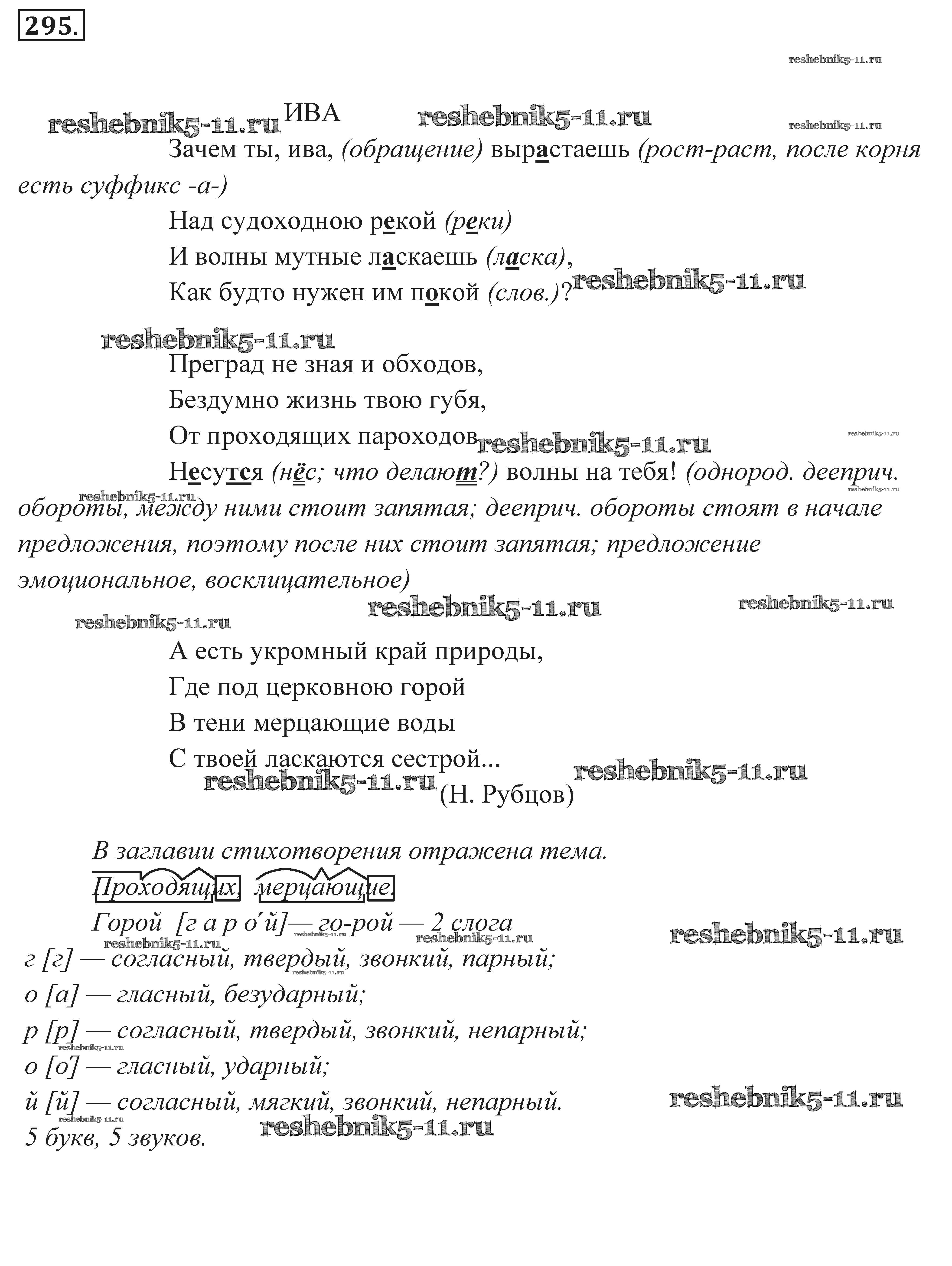 Готовая домашняя работа с ответами по Русскому языку за 7 класс Пименова, Еремеева, Купалова Практика Дрофа 2016 ФГОС - Задания 295