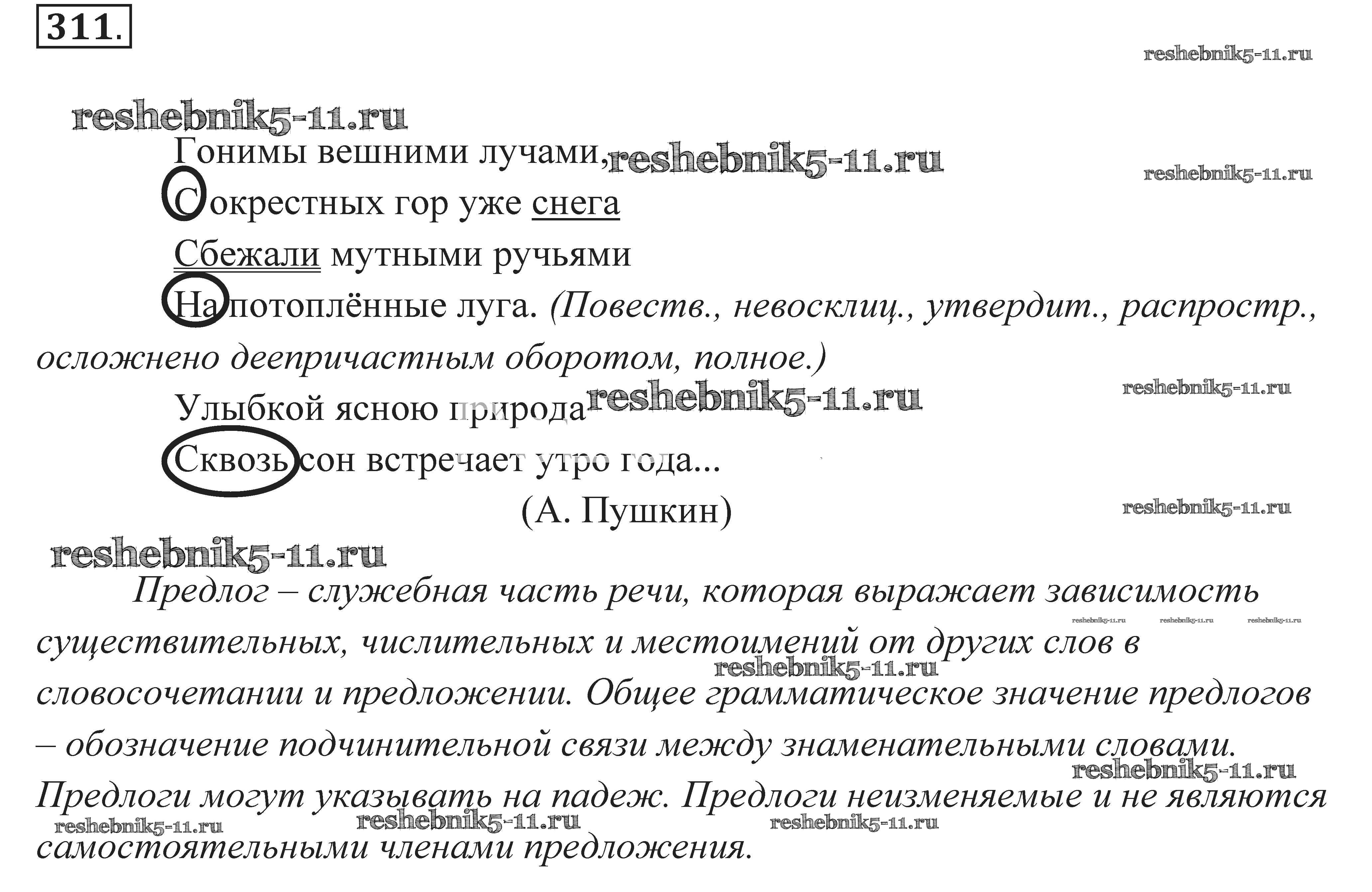 Готовая домашняя работа с ответами по Русскому языку за 7 класс Пименова, Еремеева, Купалова Практика Дрофа 2016 ФГОС - Задания 311
