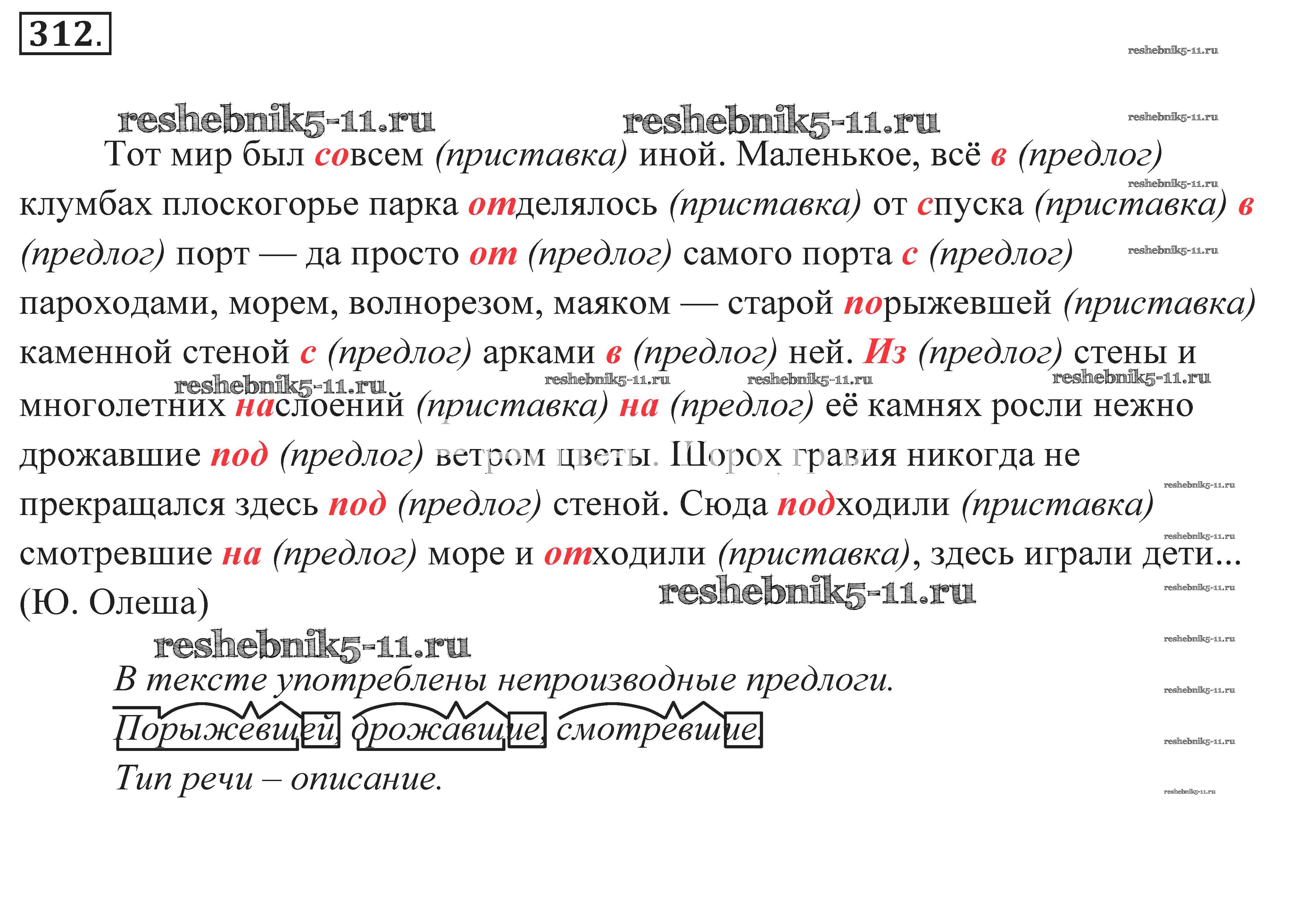 Готовая домашняя работа с ответами по Русскому языку за 7 класс Пименова, Еремеева, Купалова Практика Дрофа 2016 ФГОС - Задания 312