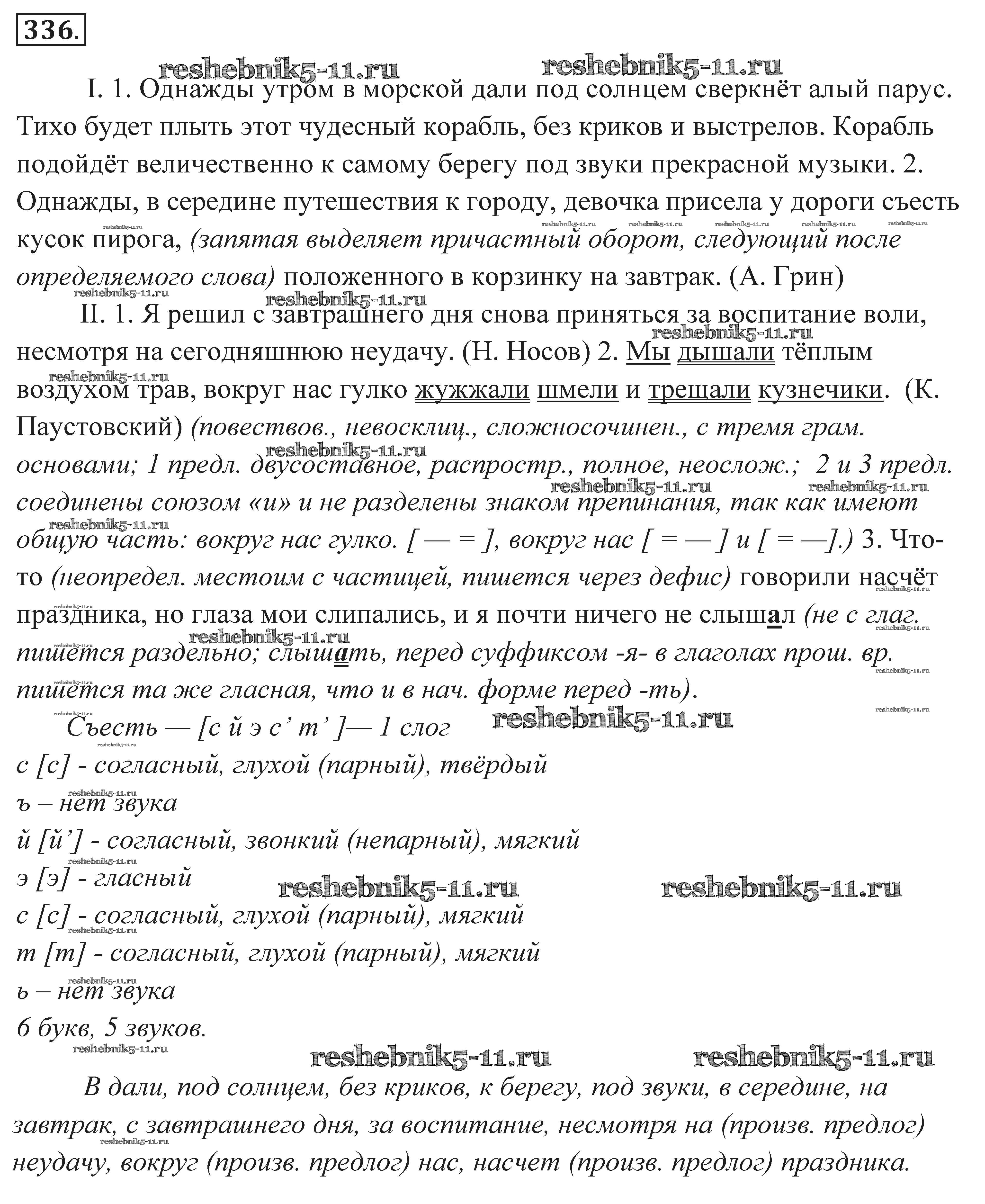 Готовая домашняя работа с ответами по Русскому языку за 7 класс Пименова, Еремеева, Купалова Практика Дрофа 2016 ФГОС - Задания 336