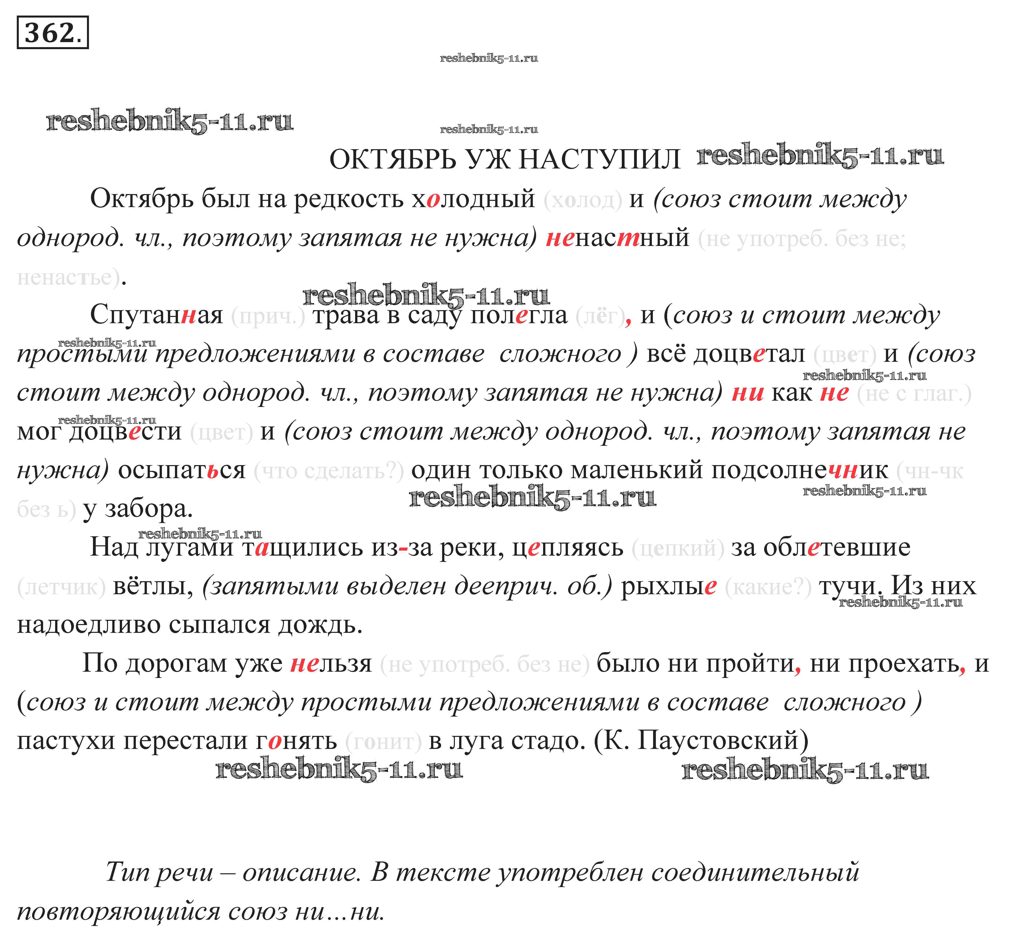 Готовая домашняя работа с ответами по Русскому языку за 7 класс Пименова, Еремеева, Купалова Практика Дрофа 2016 ФГОС - Задания 362