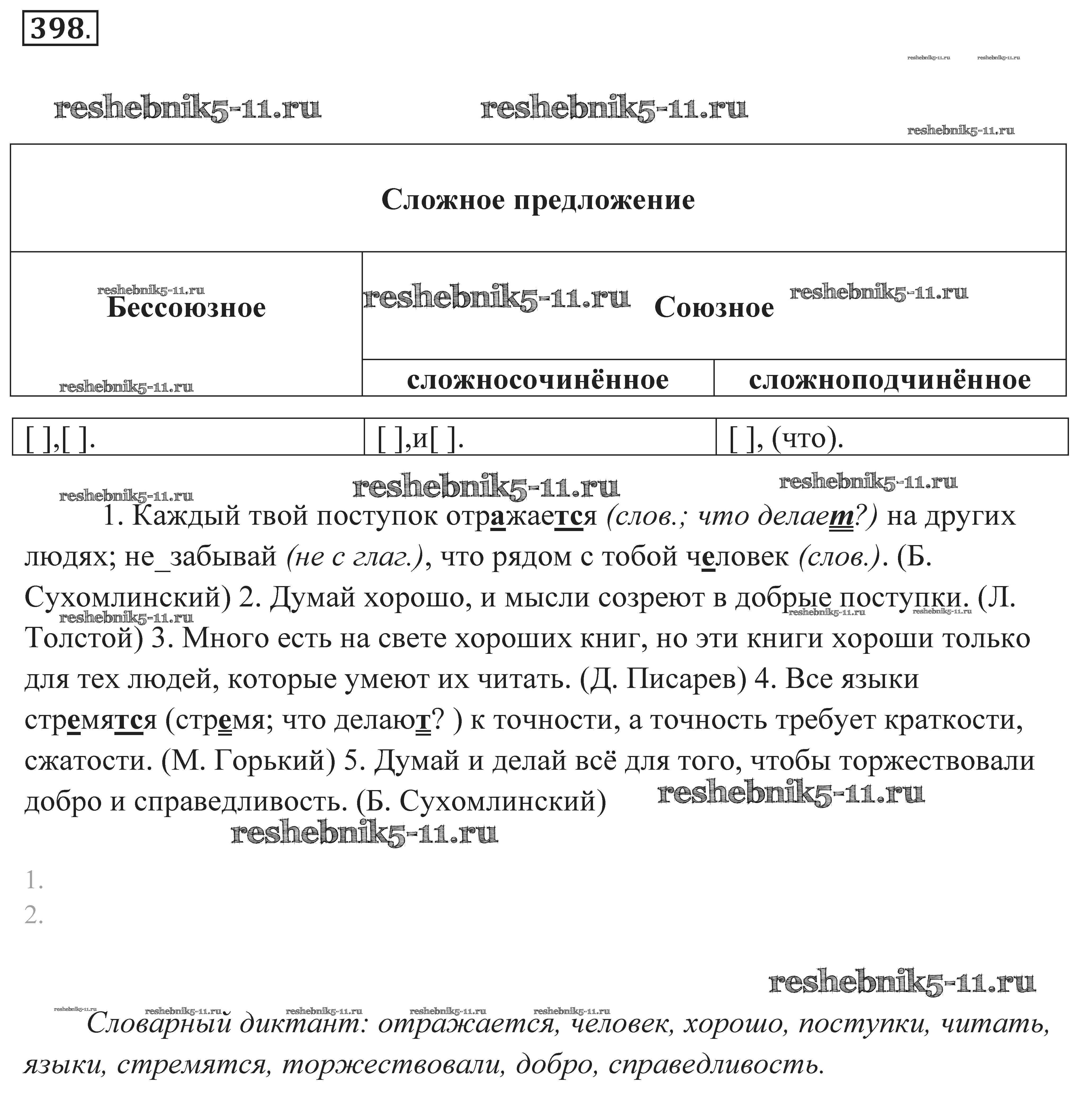 Готовая домашняя работа с ответами по Русскому языку за 7 класс Пименова, Еремеева, Купалова Практика Дрофа 2016 ФГОС - Задания 398
