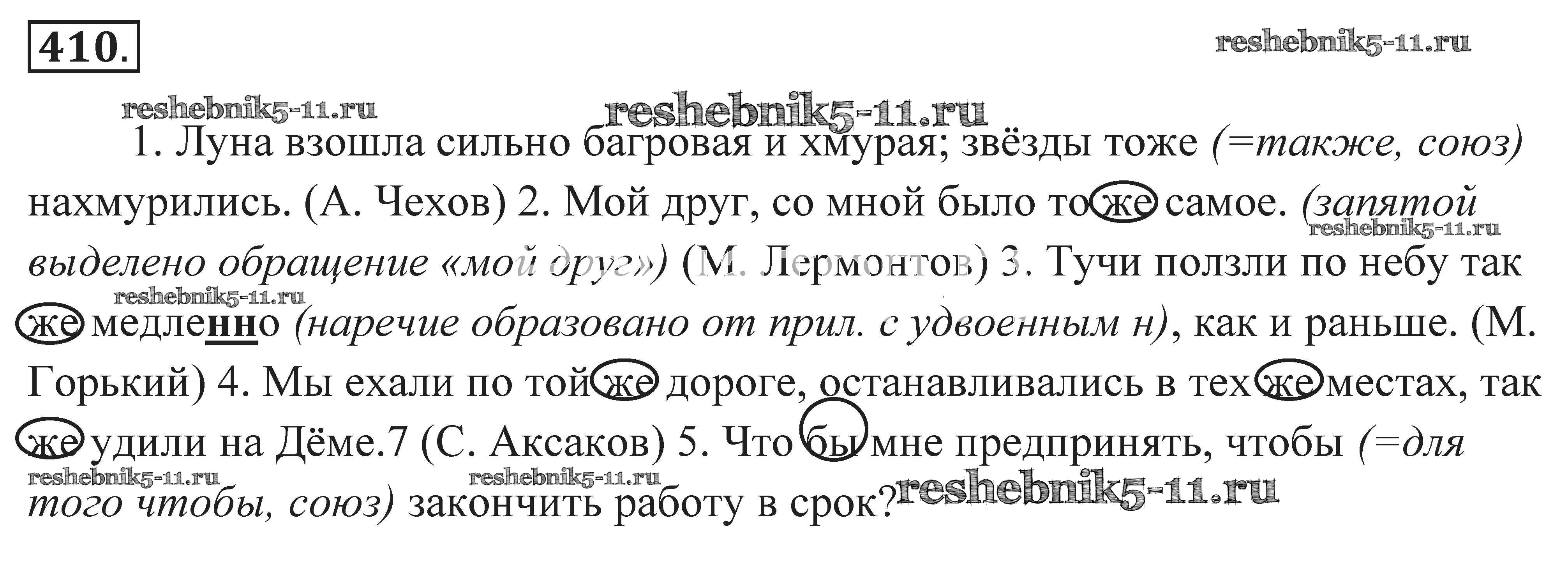 Готовая домашняя работа с ответами по Русскому языку за 7 класс Пименова, Еремеева, Купалова Практика Дрофа 2016 ФГОС - Задания 410