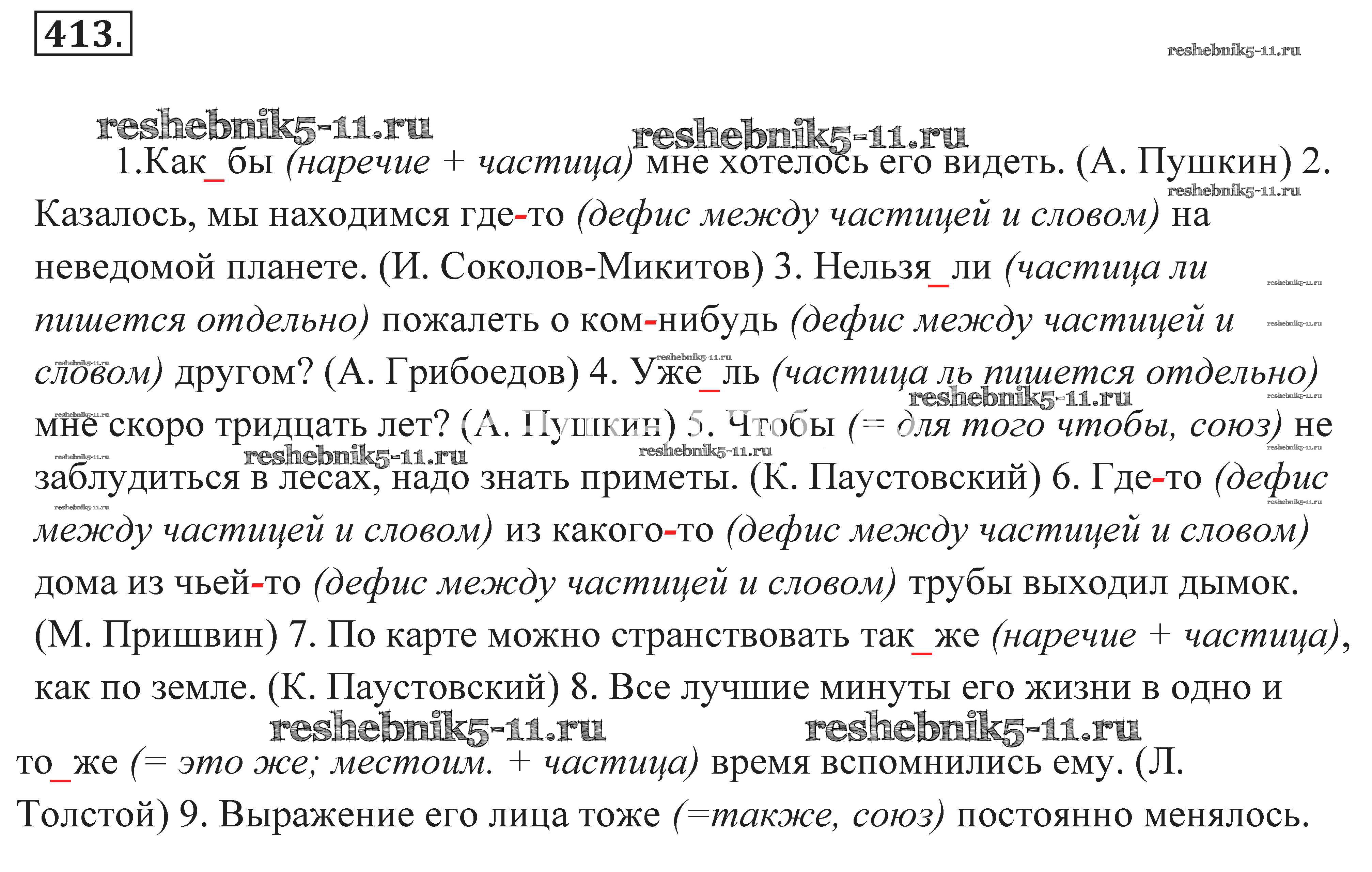 Готовая домашняя работа с ответами по Русскому языку за 7 класс Пименова, Еремеева, Купалова Практика Дрофа 2016 ФГОС - Задания 413