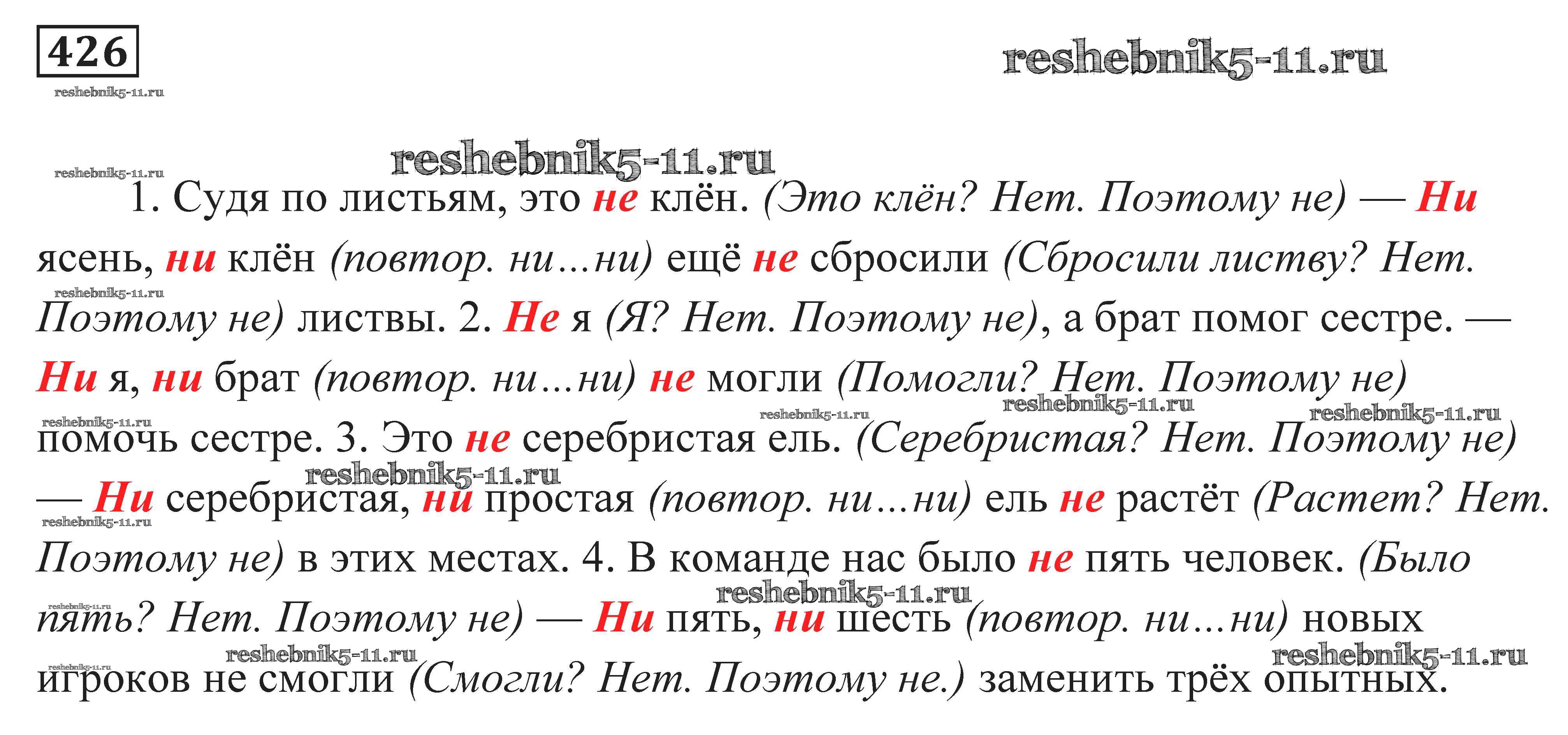 Готовая домашняя работа с ответами по Русскому языку за 7 класс Пименова, Еремеева, Купалова Практика Дрофа 2016 ФГОС - Задания 426