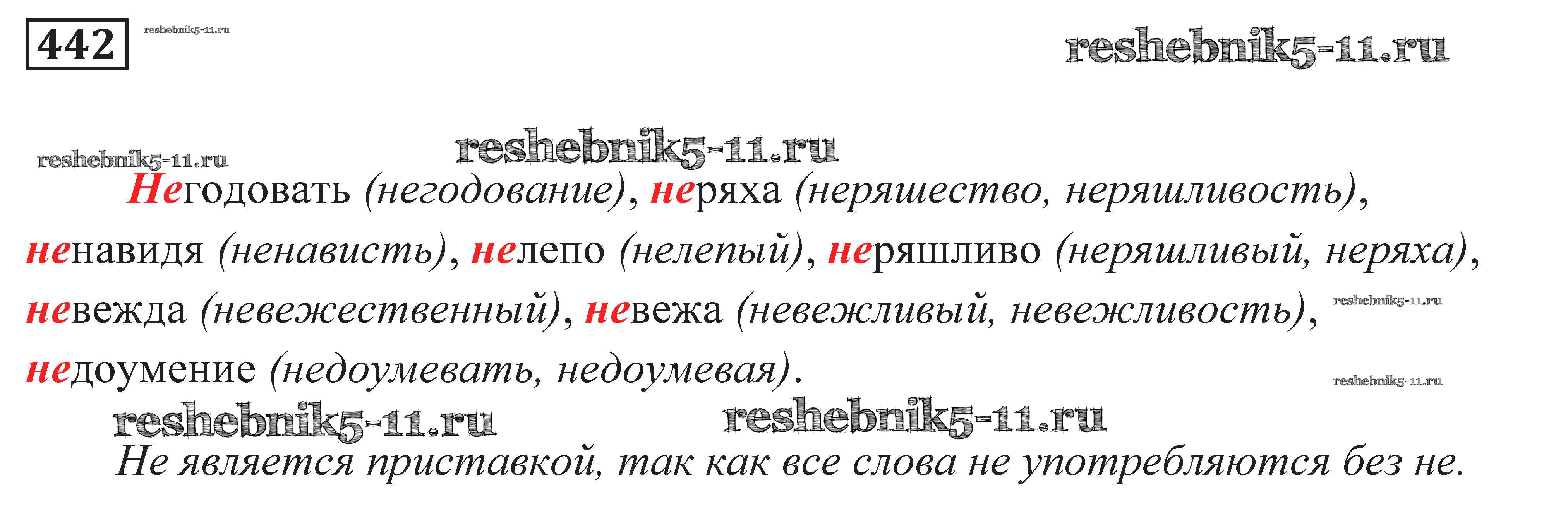 Готовая домашняя работа с ответами по Русскому языку за 7 класс Пименова, Еремеева, Купалова Практика Дрофа 2016 ФГОС - Задания 442