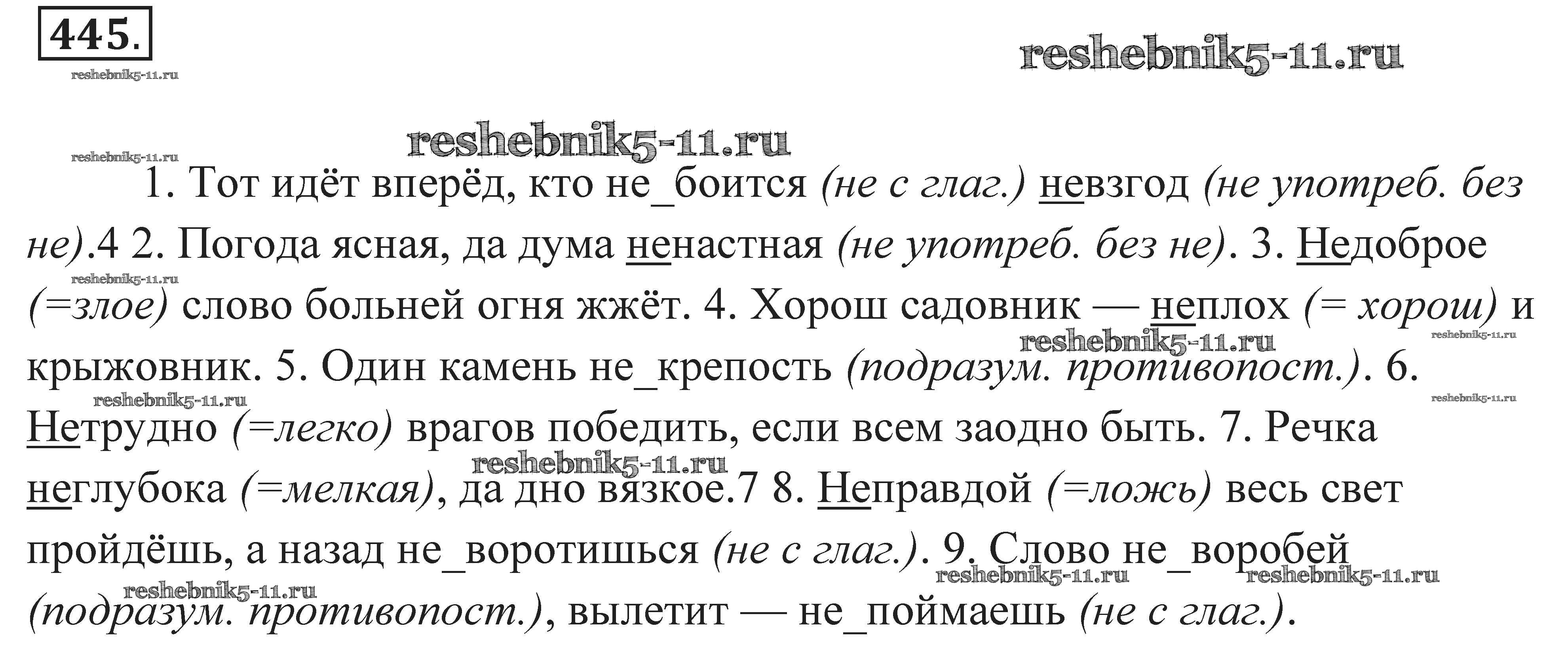 Готовая домашняя работа с ответами по Русскому языку за 7 класс Пименова, Еремеева, Купалова Практика Дрофа 2016 ФГОС - Задания 445