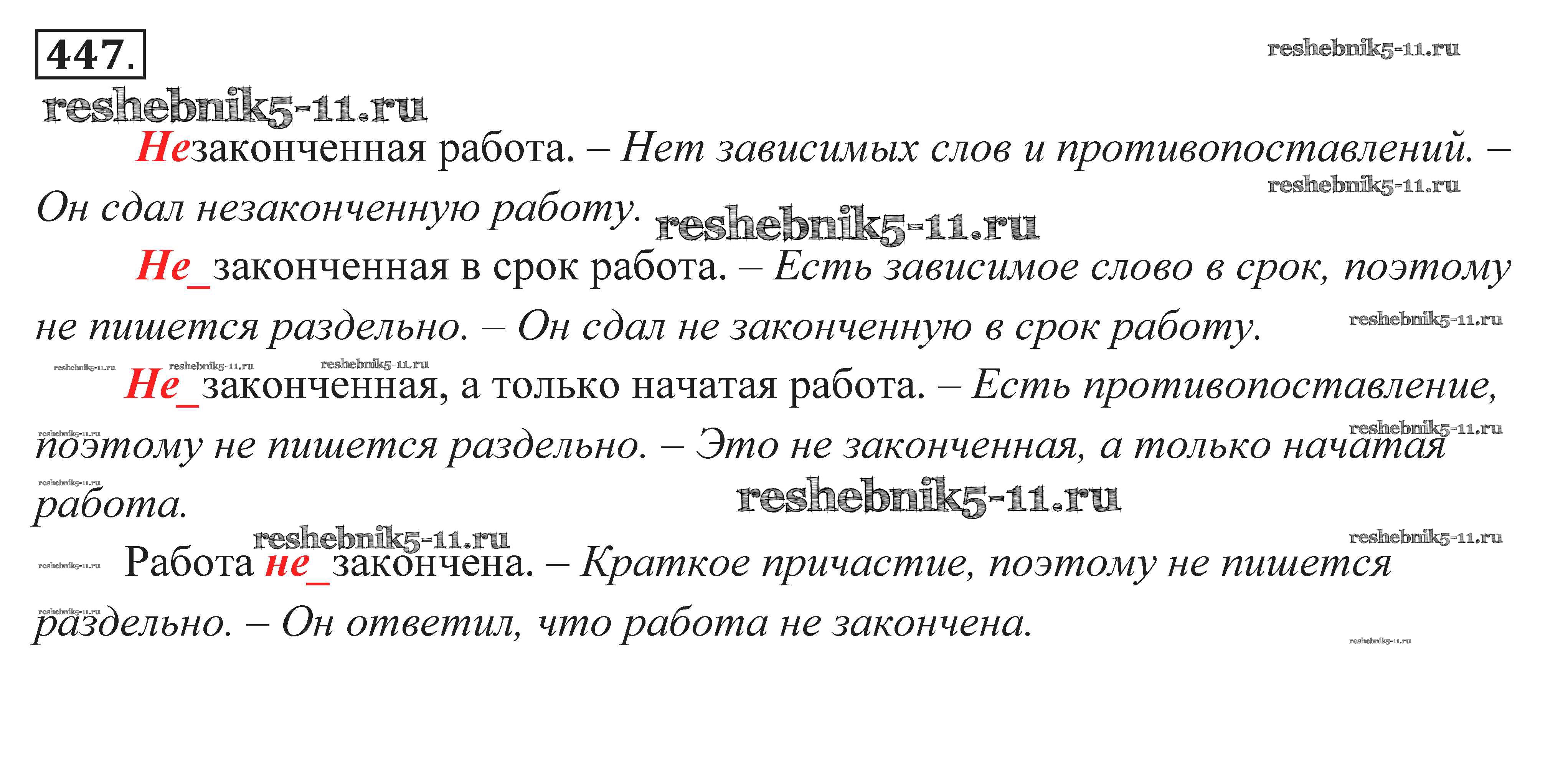 Готовая домашняя работа с ответами по Русскому языку за 7 класс Пименова, Еремеева, Купалова Практика Дрофа 2016 ФГОС - Задания 447
