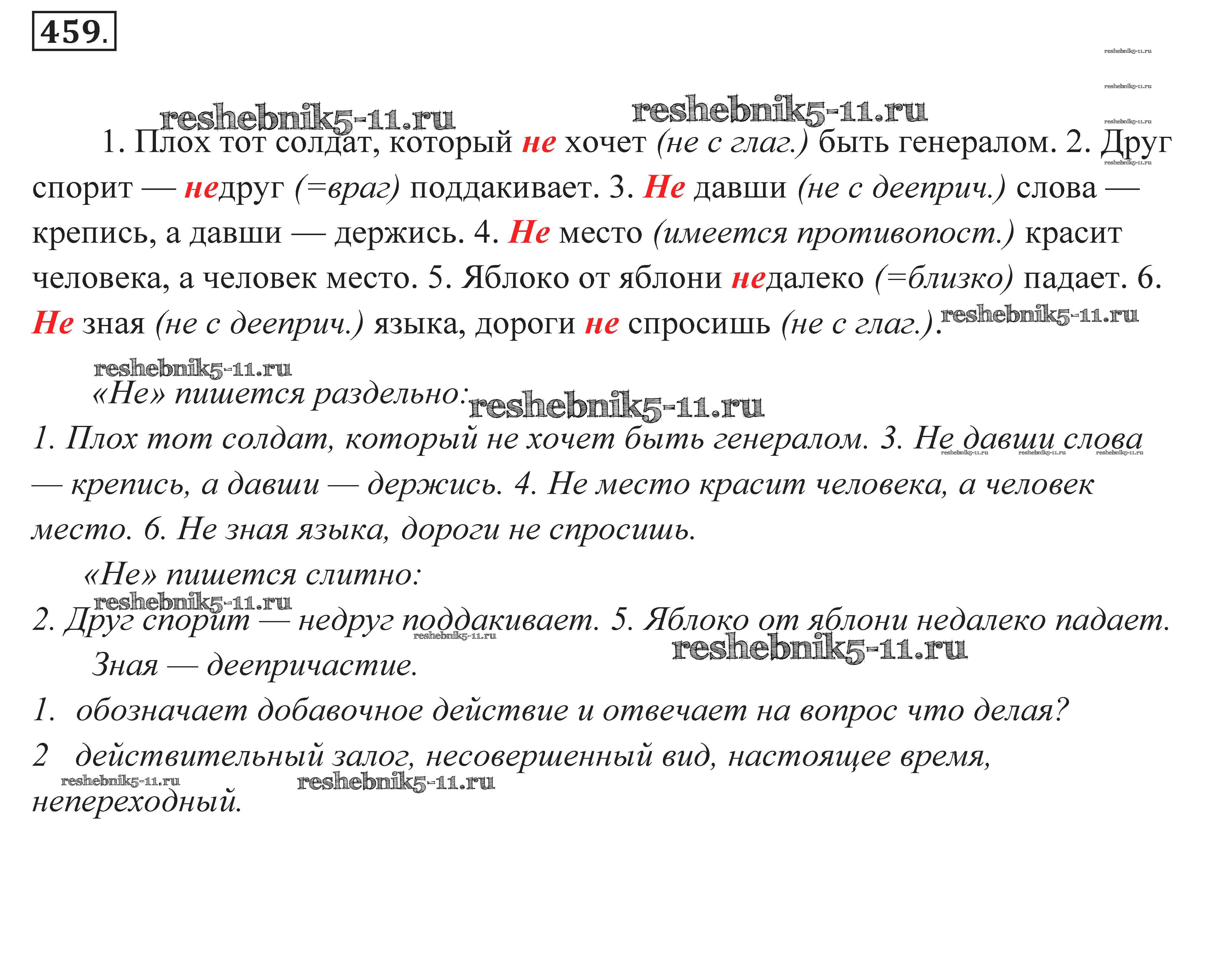 Готовая домашняя работа с ответами по Русскому языку за 7 класс Пименова, Еремеева, Купалова Практика Дрофа 2016 ФГОС - Задания 459