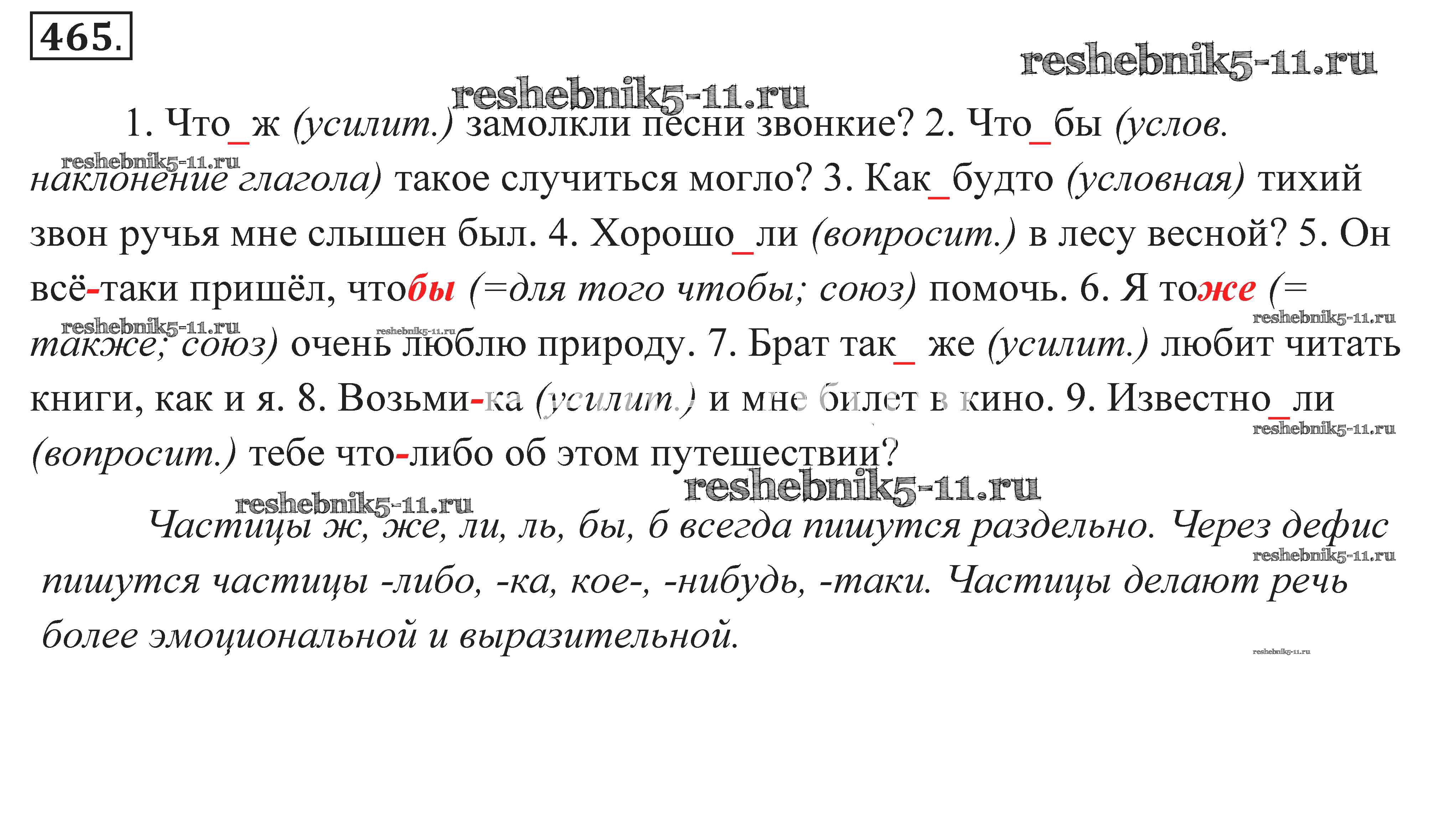 Русский язык за 7 класс Пименова Практика Дрофа задание 465