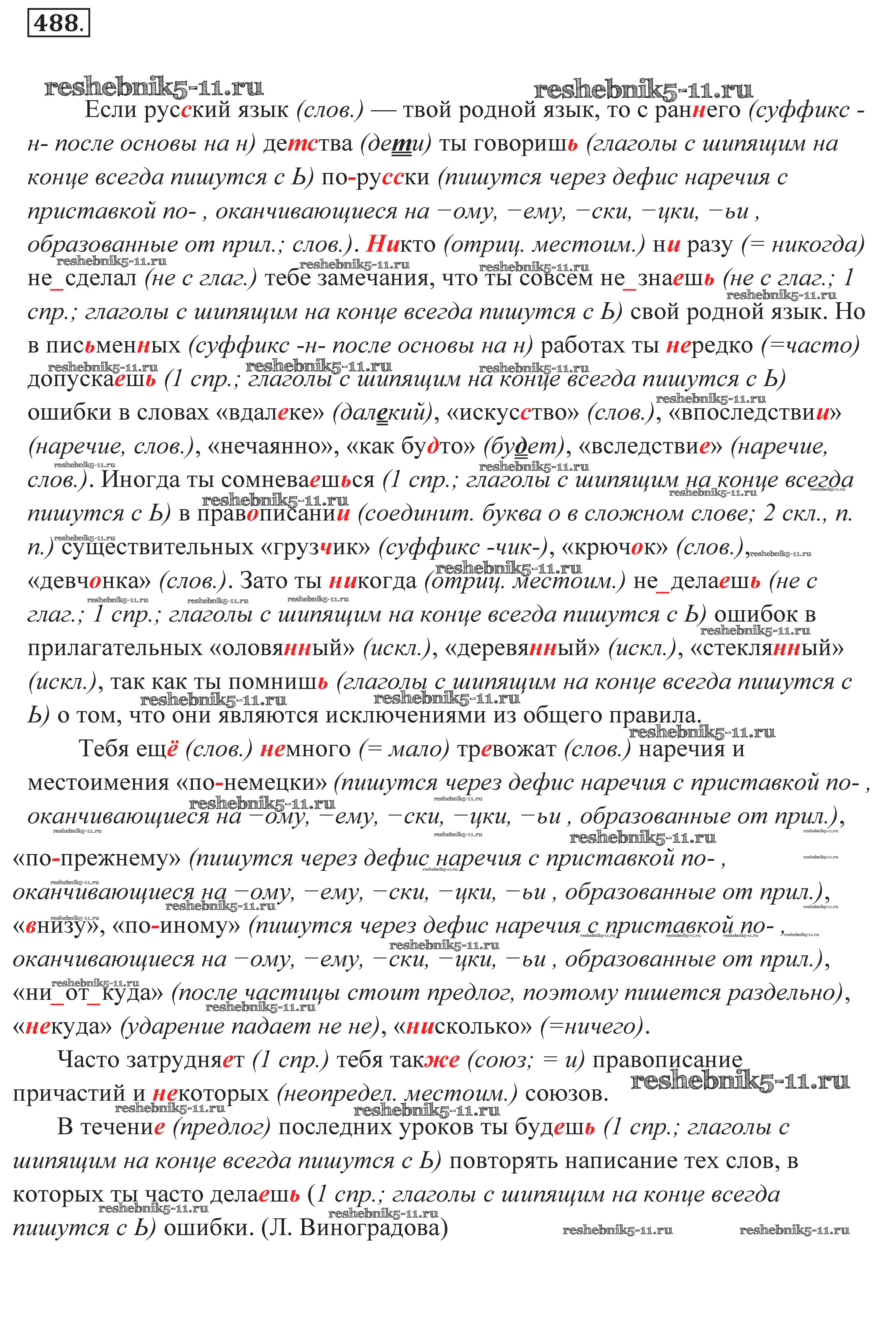 Русский язык за 7 класс Пименова Практика Дрофа задание 488
