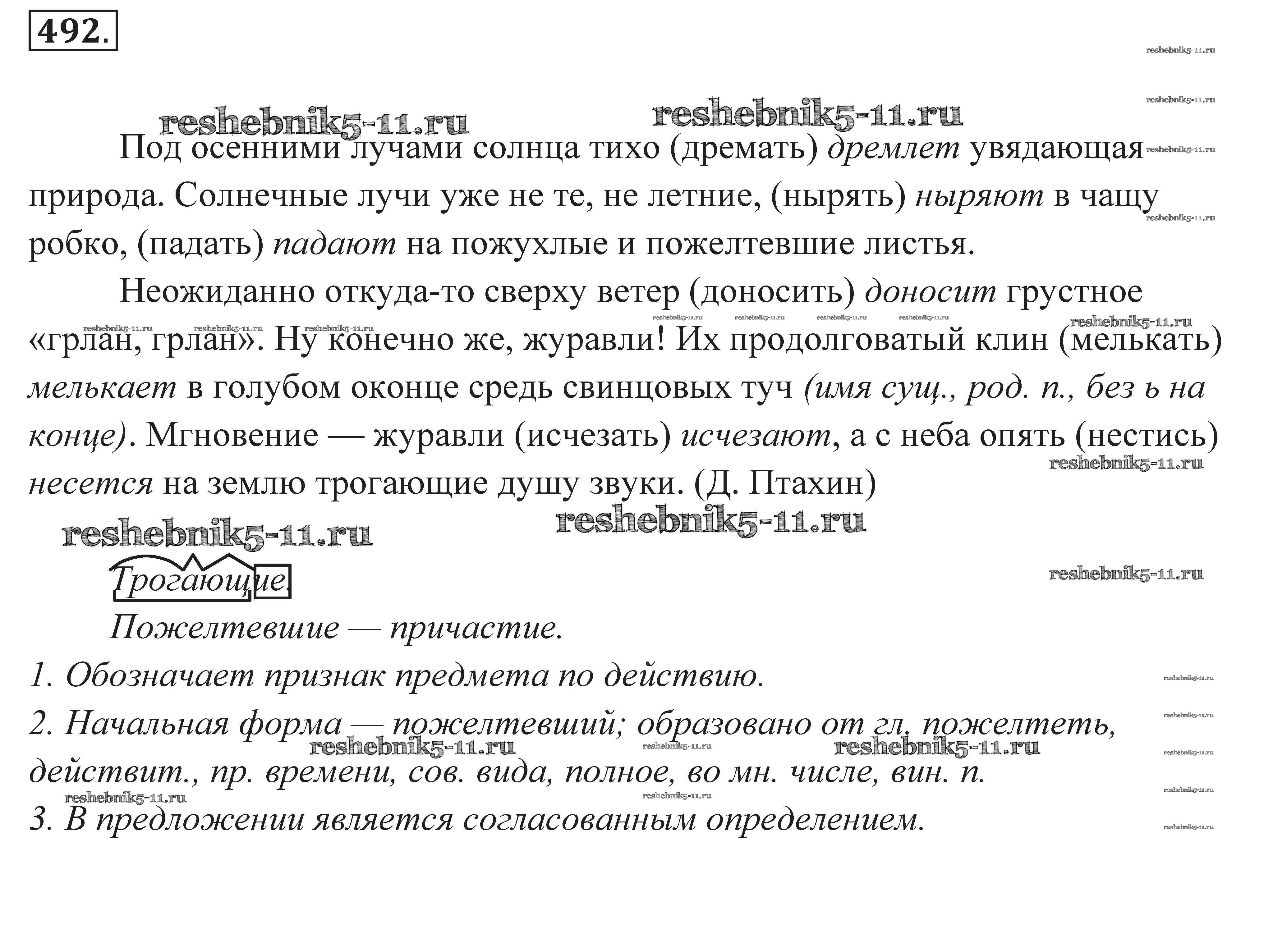 Готовая домашняя работа с ответами по Русскому языку за 7 класс Пименова, Еремеева, Купалова Практика Дрофа 2016 ФГОС - Задания 492