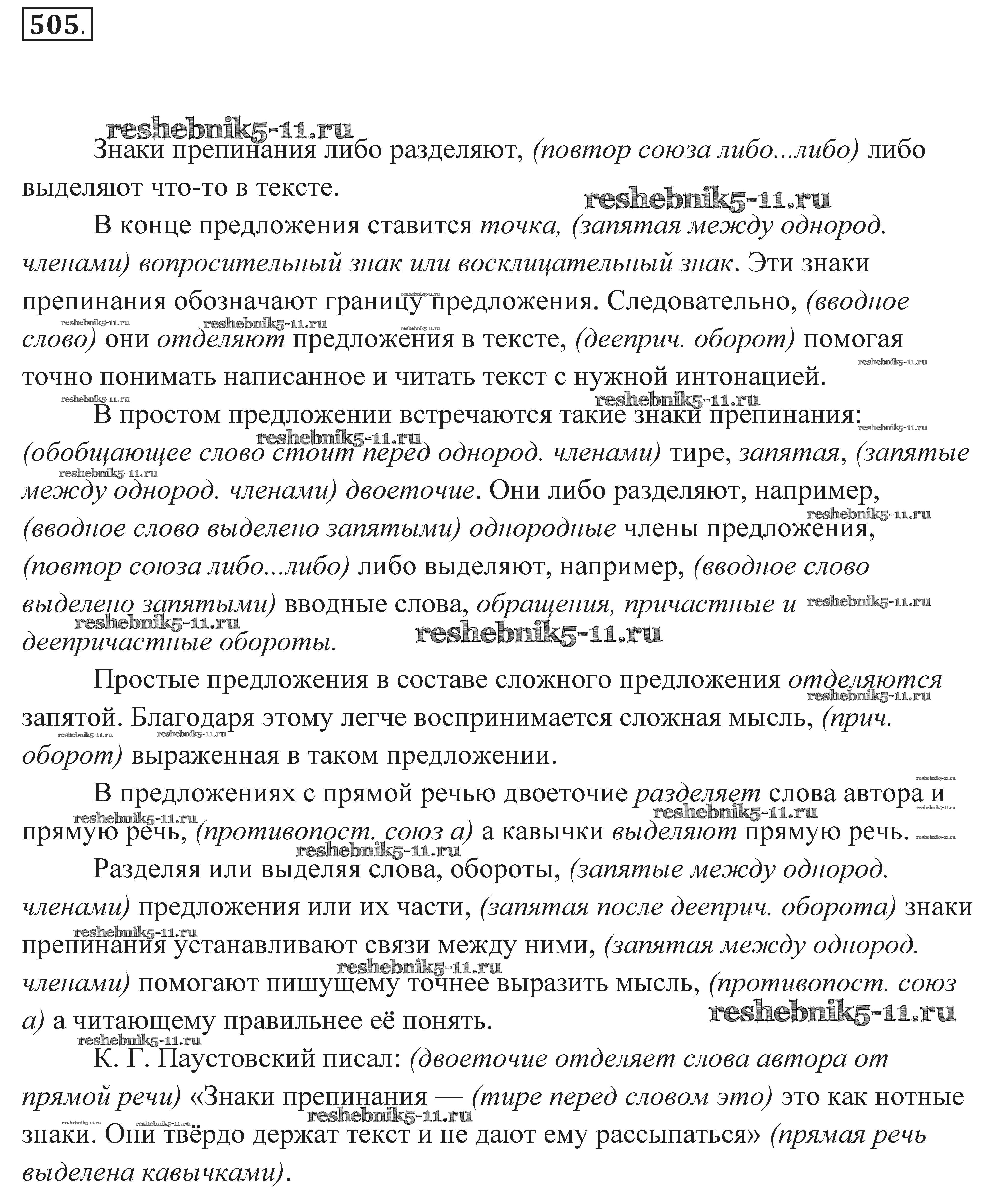 Русский язык за 7 класс Пименова Практика Дрофа задание 505