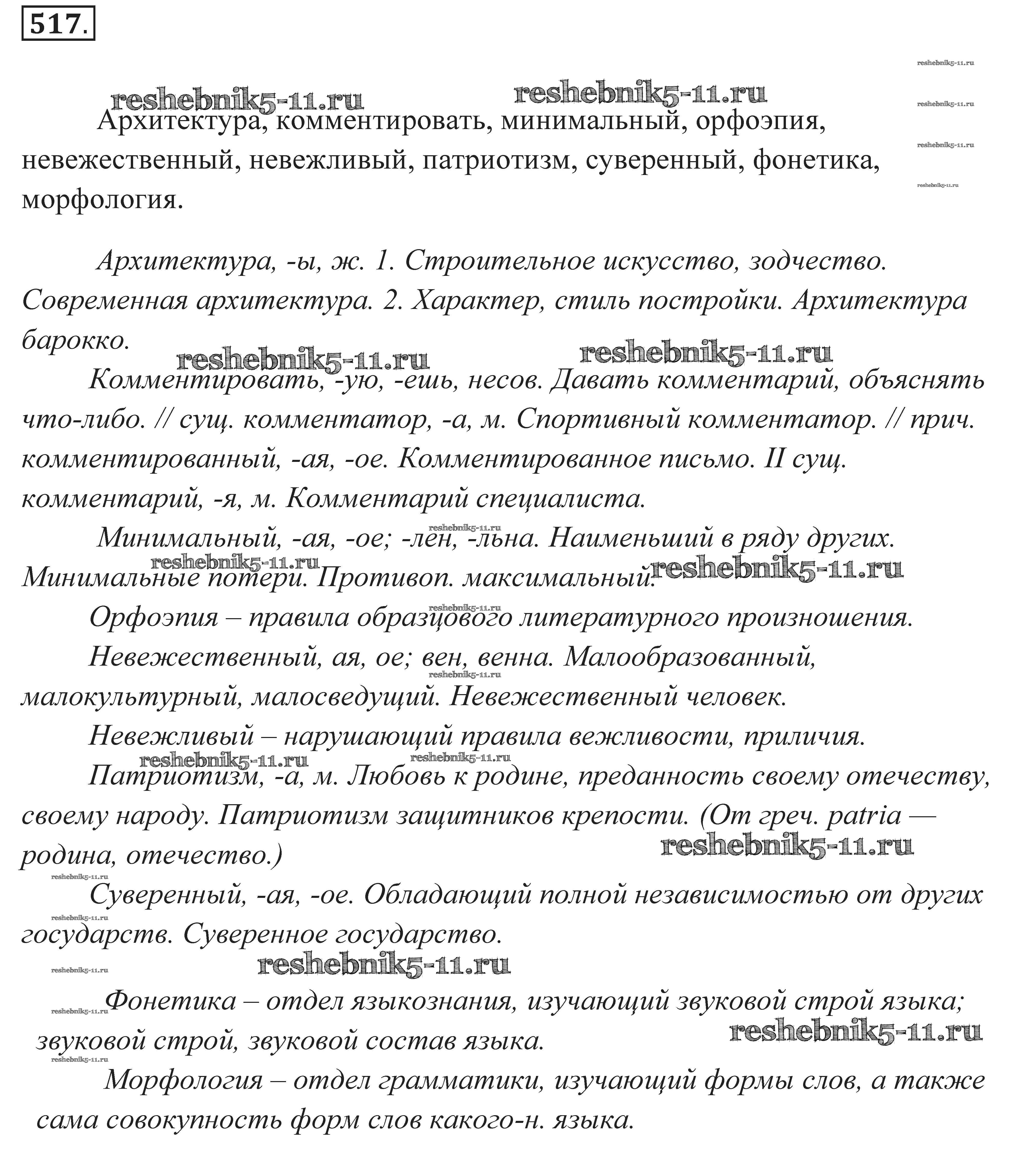 Готовая домашняя работа с ответами по Русскому языку за 7 класс Пименова, Еремеева, Купалова Практика Дрофа 2016 ФГОС - Задания 517