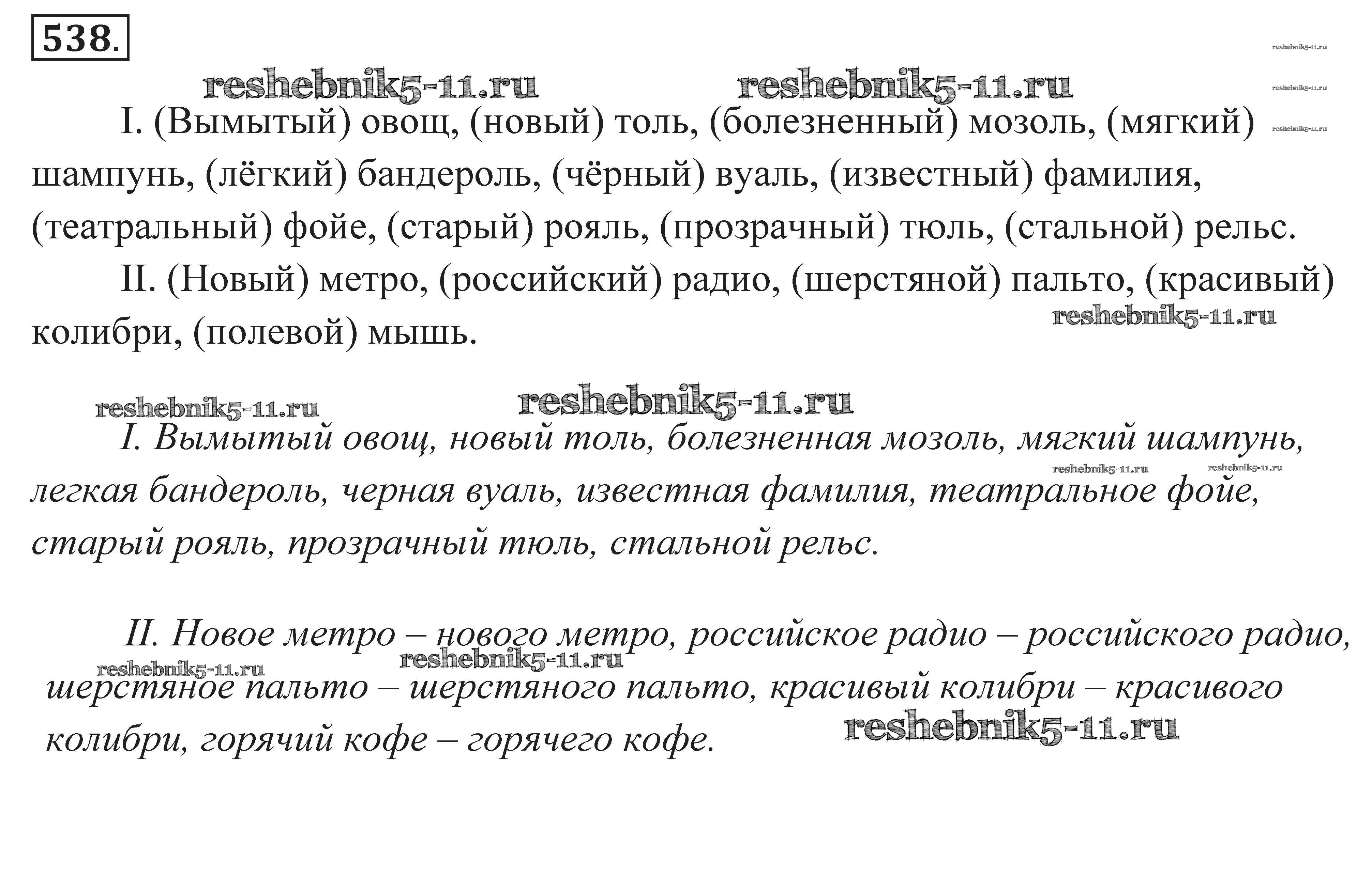 Готовая домашняя работа с ответами по Русскому языку за 7 класс Пименова, Еремеева, Купалова Практика Дрофа 2016 ФГОС - Задания 538
