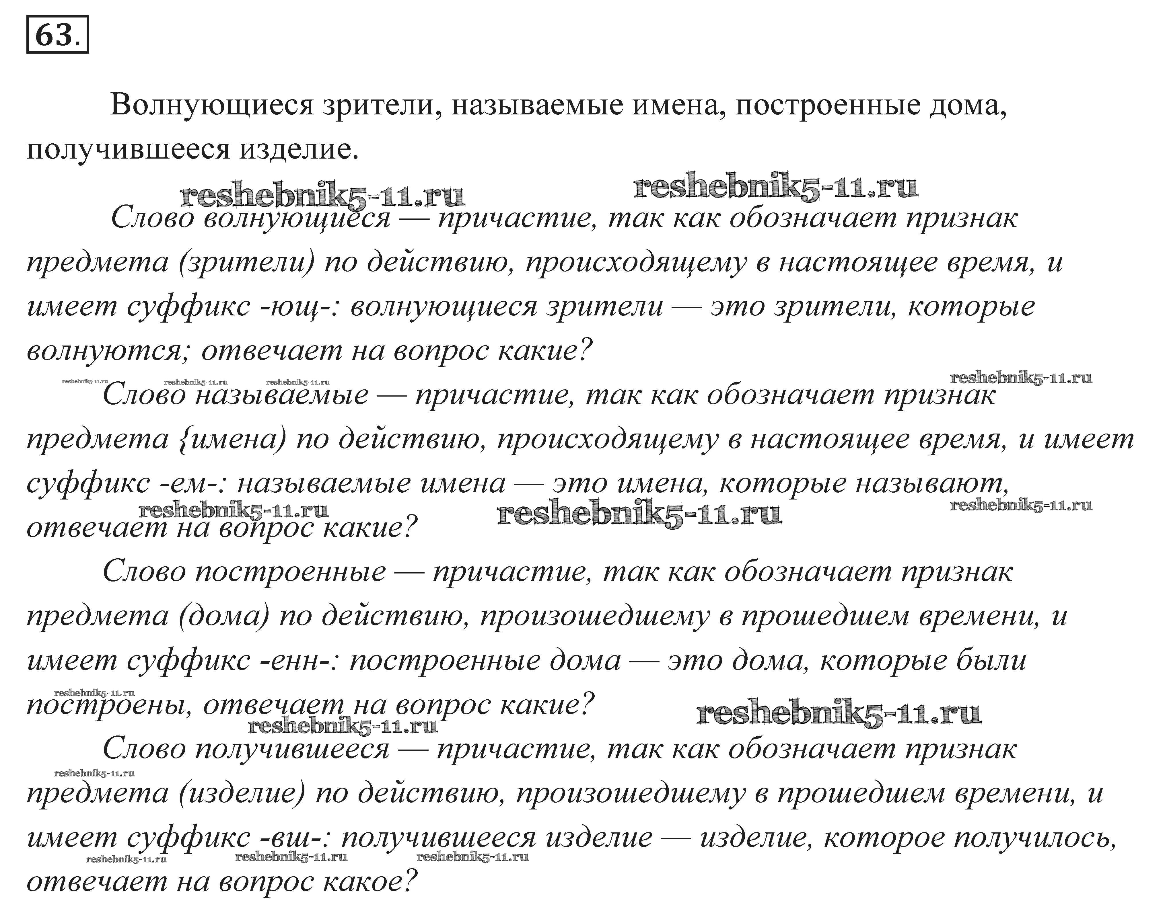 Готовая домашняя работа с ответами по Русскому языку за 7 класс Пименова, Еремеева, Купалова Практика Дрофа 2016 ФГОС - Задания 63