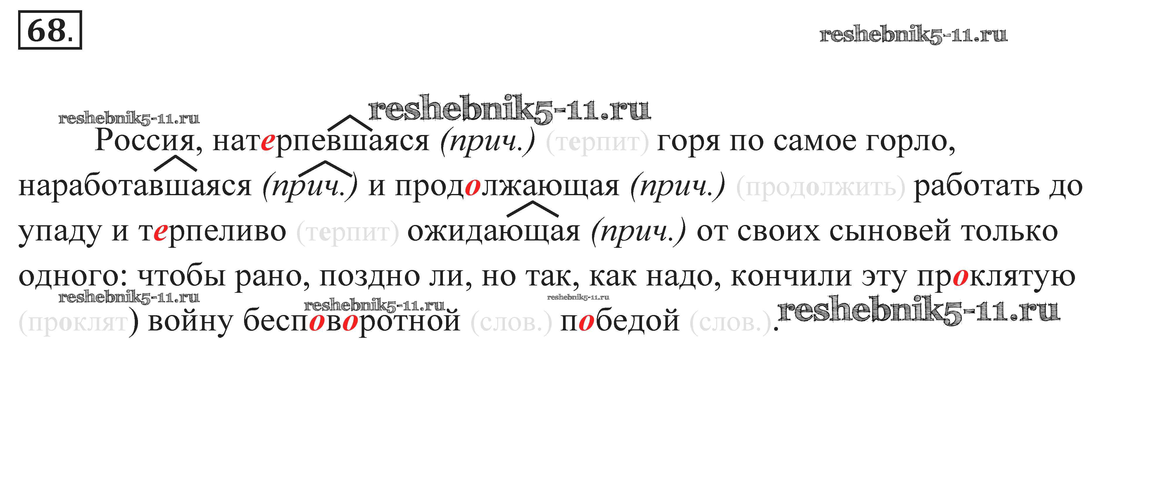 Готовая домашняя работа с ответами по Русскому языку за 7 класс Пименова, Еремеева, Купалова Практика Дрофа 2016 ФГОС - Задания 68