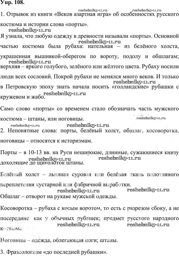 Готовая домашняя работа с ответами по Русскому языку за 7 класс Быстрова, Кибирева, Гостева, Воителева Учебник Инновационная школа Часть 1, 2 Русское слово 2019 ФГОС - Упражнения 108