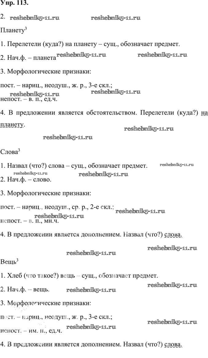 Готовая домашняя работа с ответами по Русскому языку за 7 класс Быстрова, Кибирева, Гостева, Воителева Учебник Инновационная школа Часть 1, 2 Русское слово 2019 ФГОС - Упражнения 113