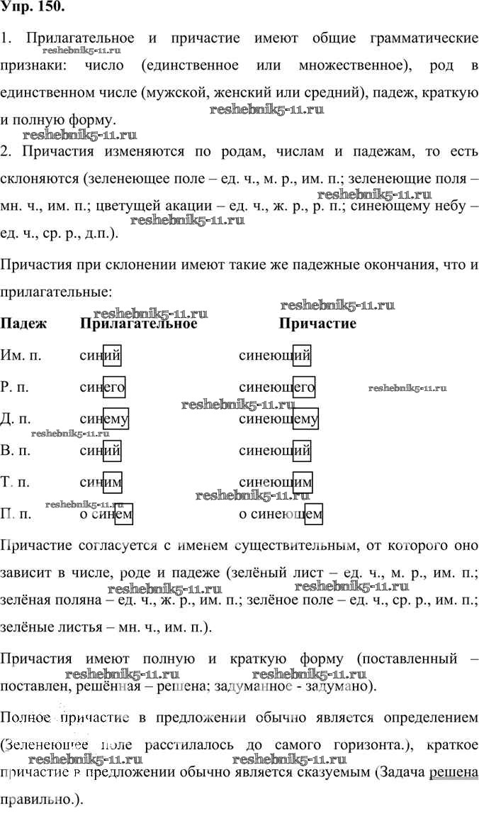 Готовая домашняя работа с ответами по Русскому языку за 7 класс Быстрова, Кибирева, Гостева, Воителева Учебник Инновационная школа Часть 1, 2 Русское слово 2019 ФГОС - Упражнения 150